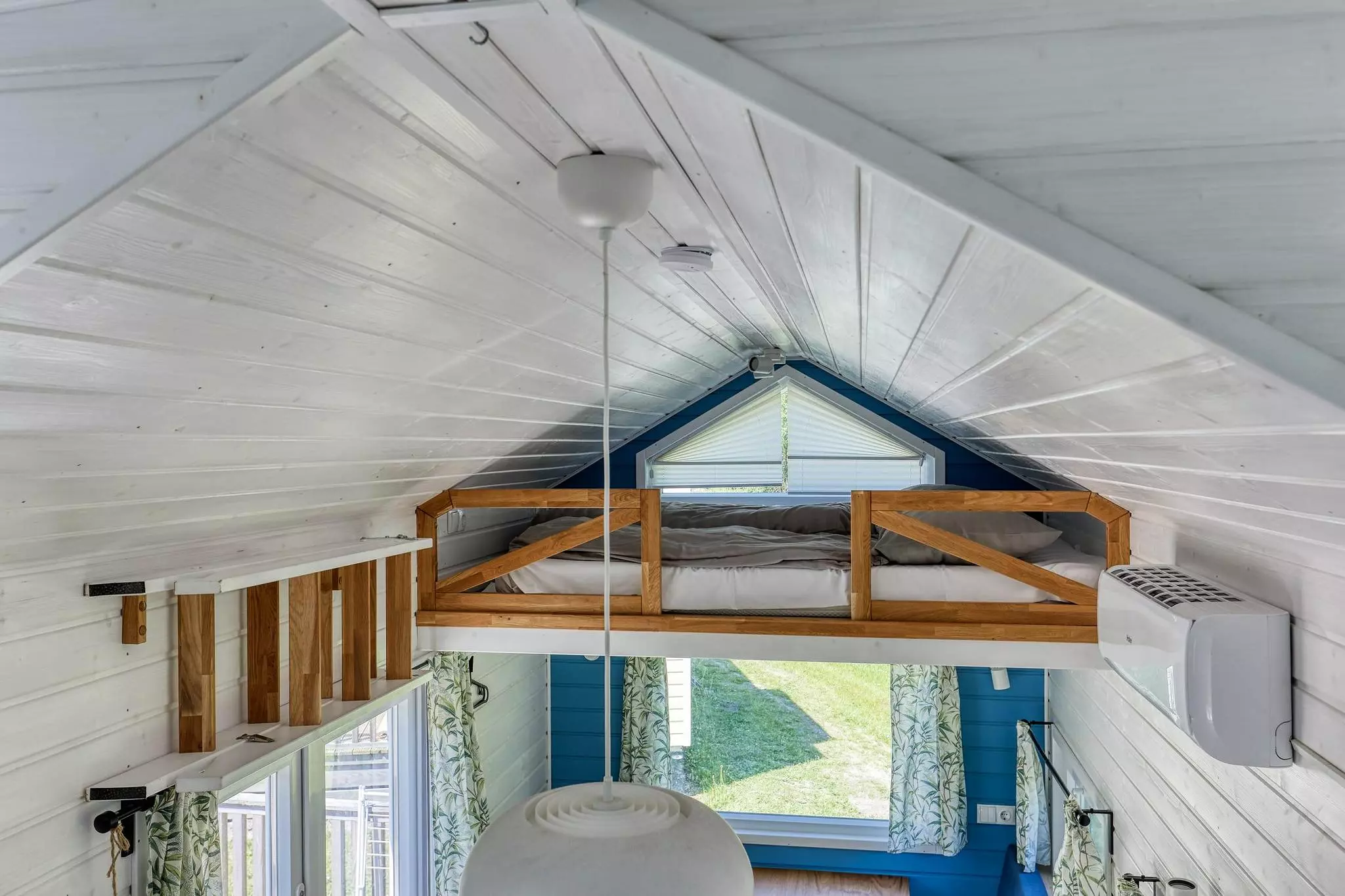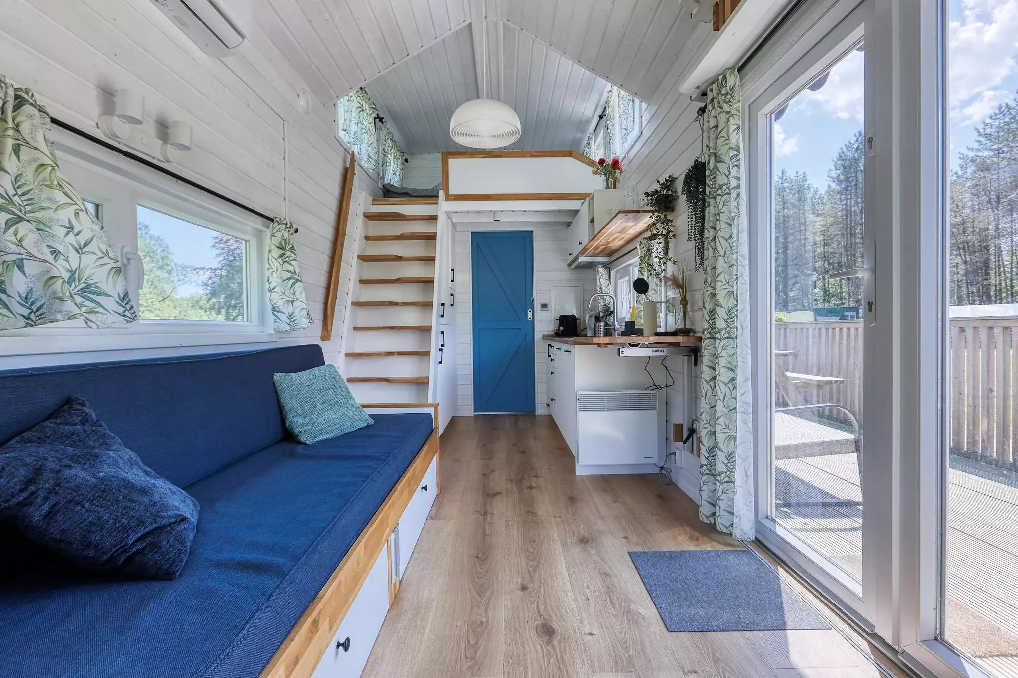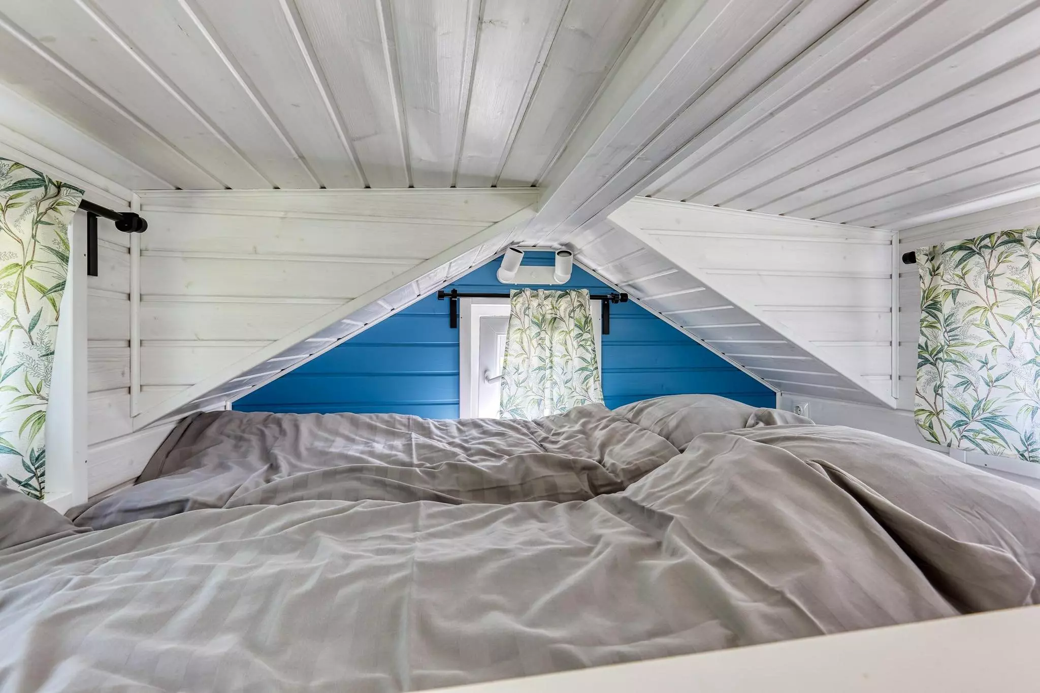 La Tiny House est conçue avec un espace ouvert et des couchages astucieux :
