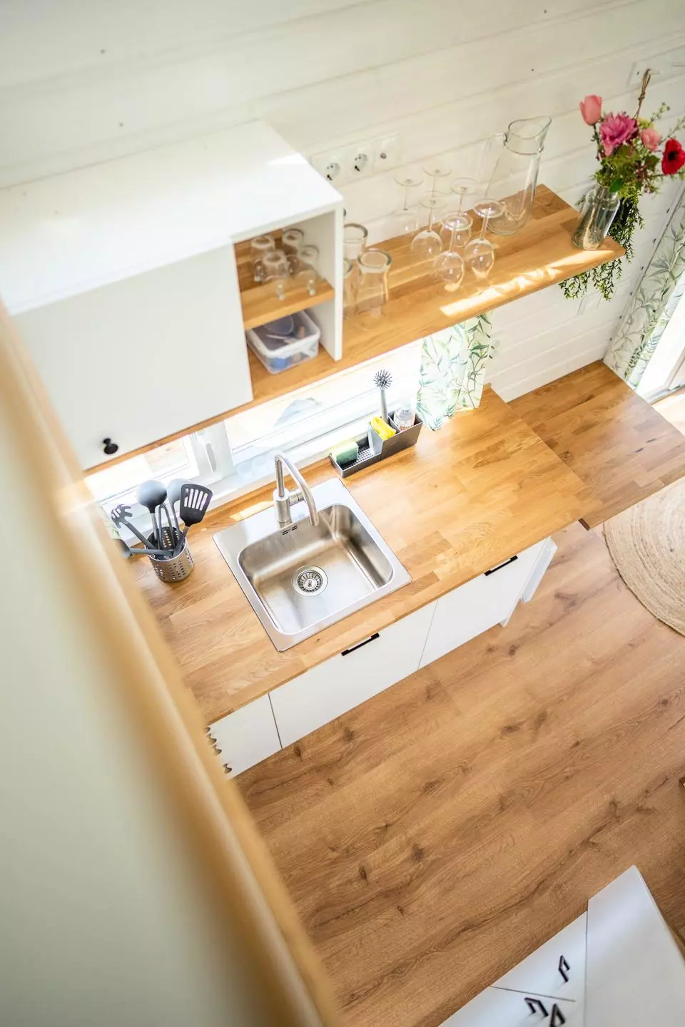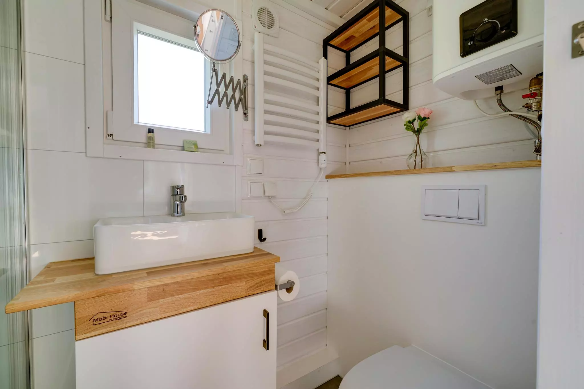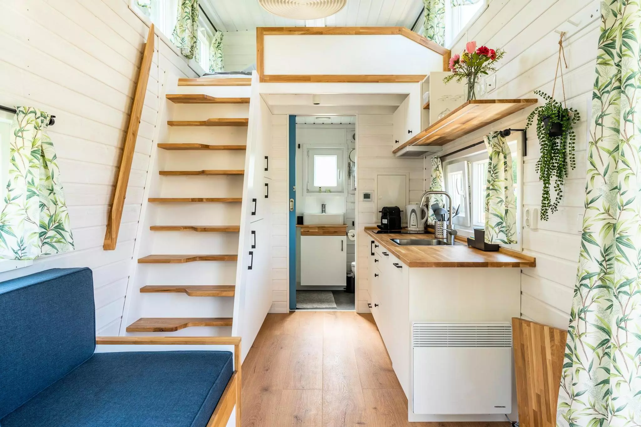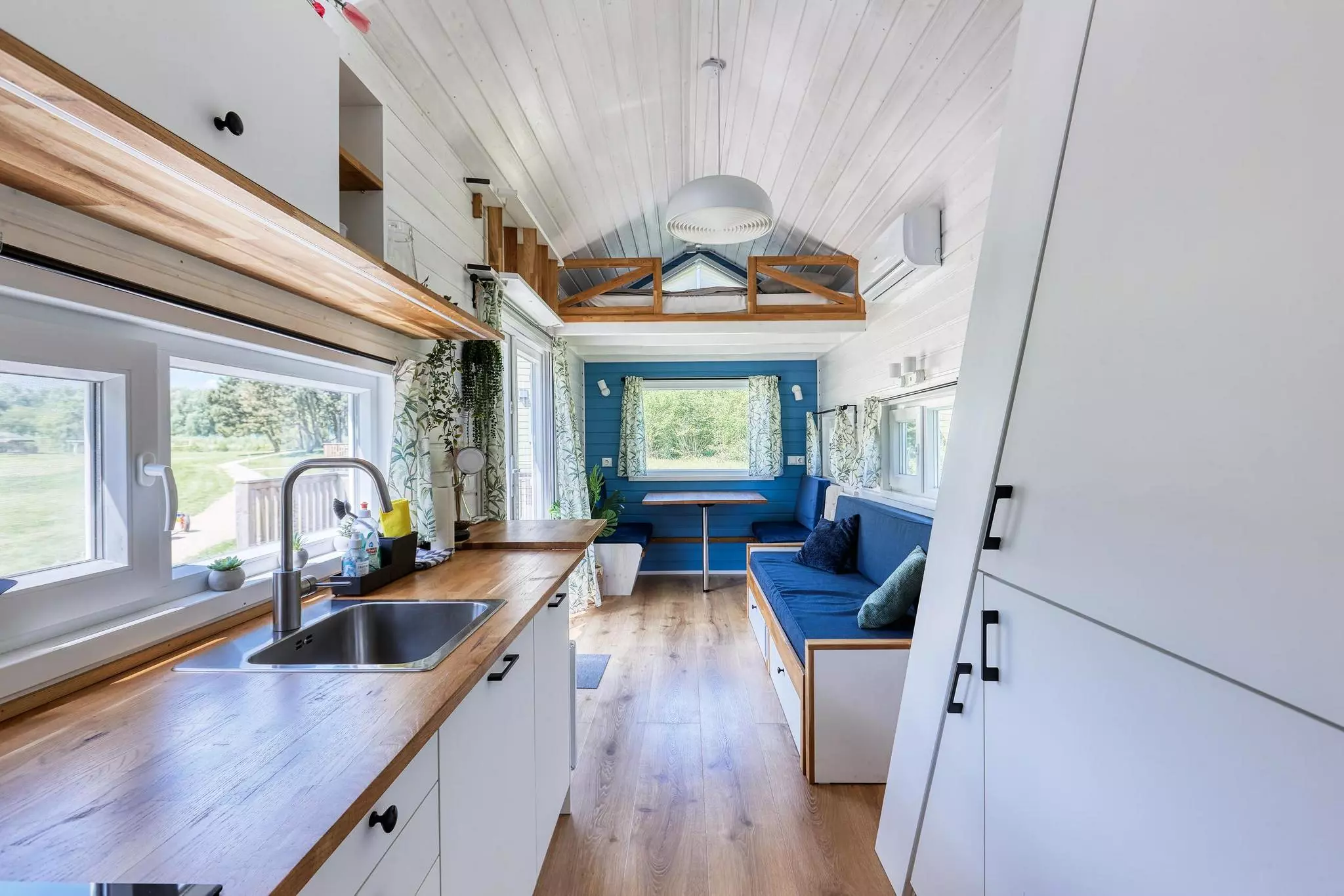 La Tiny House est conçue avec un espace ouvert et des couchages astucieux :