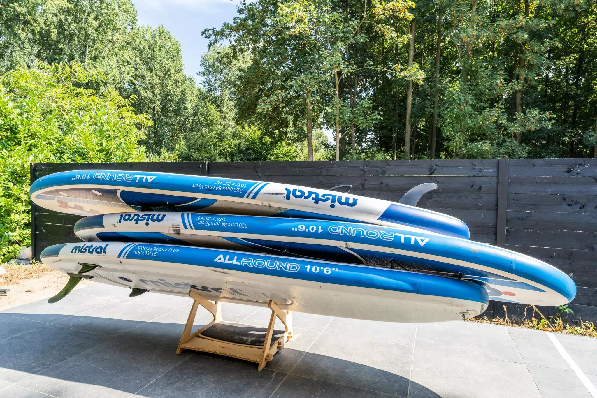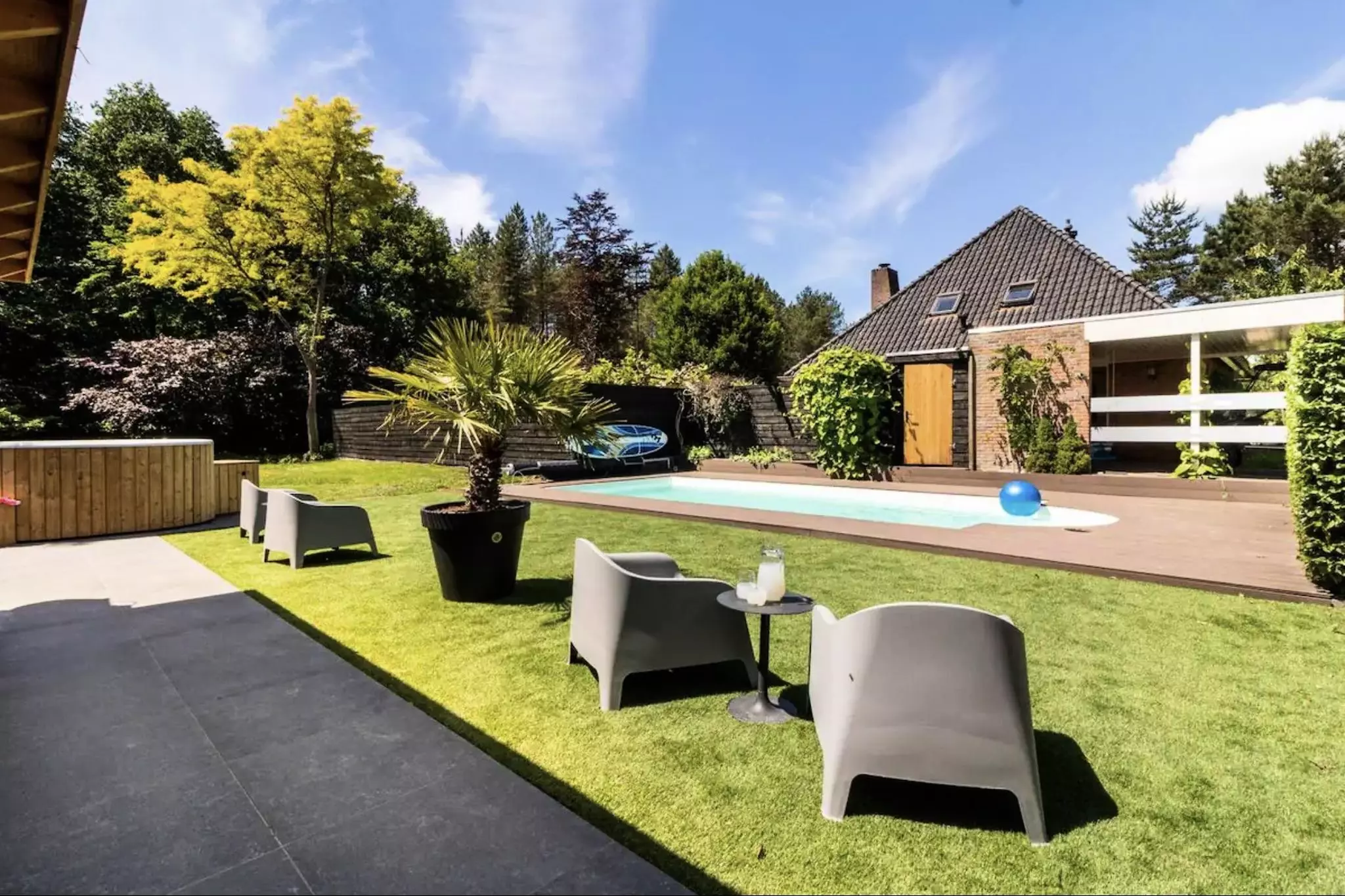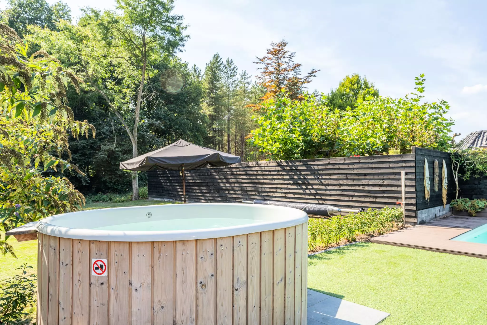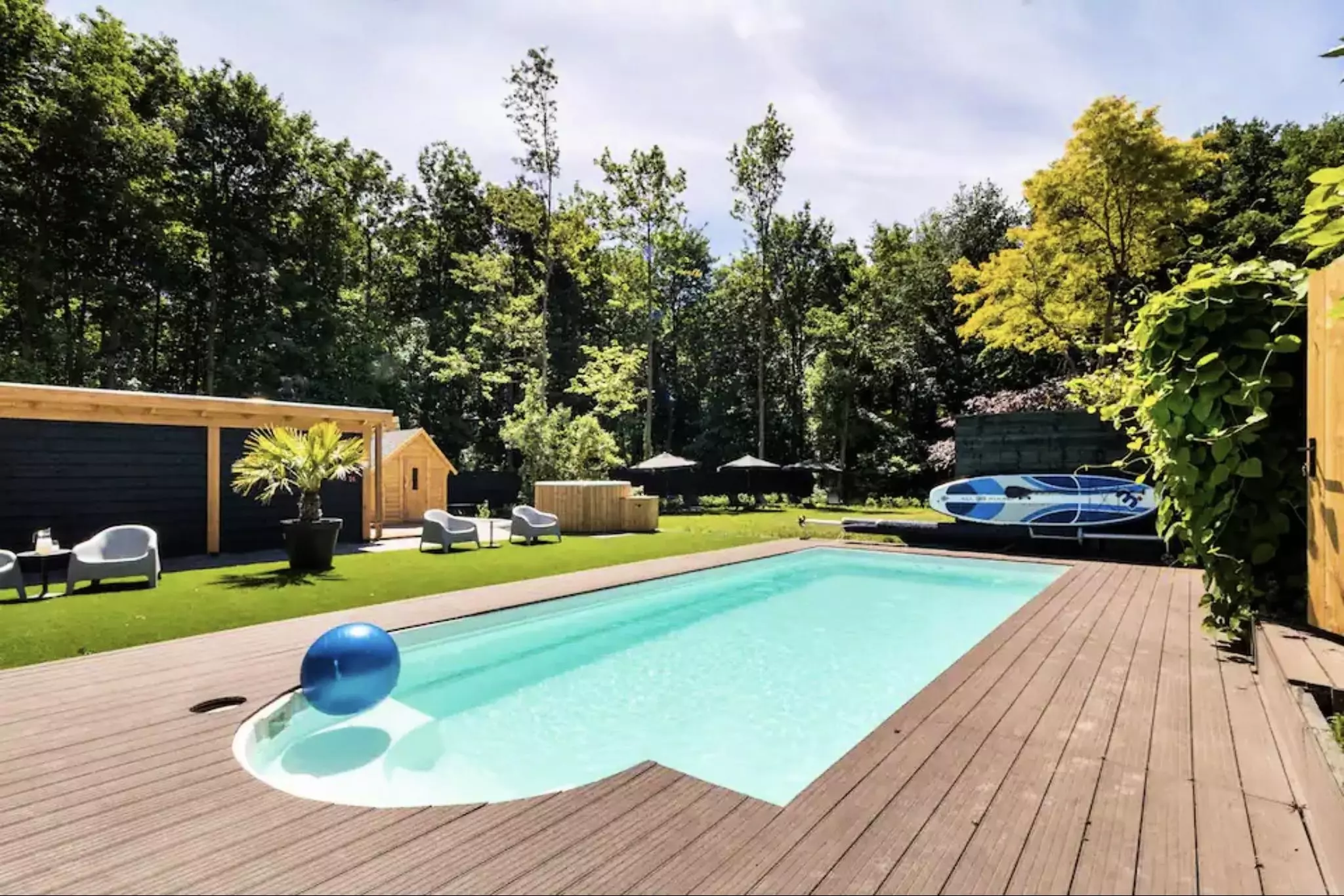 Le Glamping est situé au milieu d'une forêt sur un grand terrain de jeu. La villa se trouve à côté du terrain de jeu et est entourée d'une clôture, ce qui garantit l'intimité mais aussi un accès facile au terrain de jeu commun. Le terrain de jeu est équipé d'un dispositif de sable et d'eau pour les tout-petits, d'un but de football, d'un filet de volley-ball, de plusieurs tables de pique-nique idéales pour un barbecue "Green Egg" le soir et, enfin, d'un endroit pour faire un feu de camp ! À côté de la villa se trouve notre propre centre de bien-être écologique où vous pouvez vous détendre dans le sauna, le bain à remous ou la piscine.