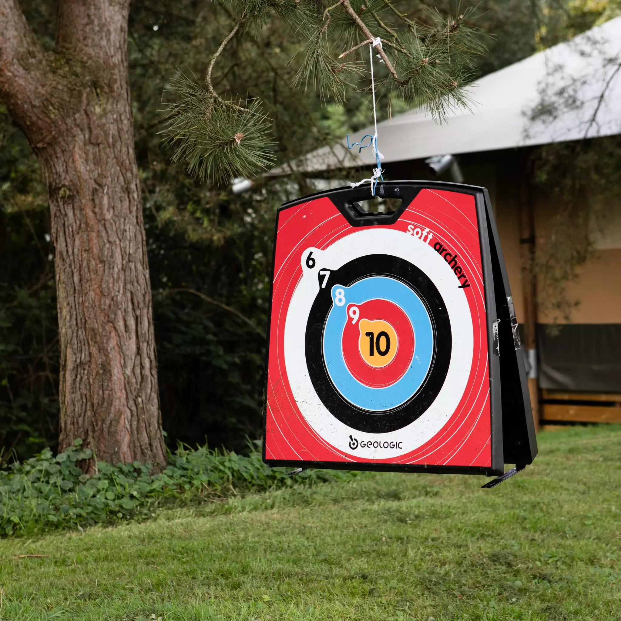 Le Glamping est situé au milieu d'une forêt sur un grand terrain de jeu avec une piscine à son bord. Le terrain de jeu est équipé d'un bac à sable pour les tout-petits, d'un but de football, d'un filet de volley-ball, de plusieurs tables de pique-nique idéales pour un barbecue "Green Egg" le soir et, enfin, d'un espace pour faire un feu de camp ! Tous nos hôtes peuvent réserver gratuitement notre propre espace de bien-être écologique pour un usage privé. Un endroit séparé où vous pouvez vous détendre sans être vu et sans être habillé avec toute la famille dans le sauna, le bain à remous et la piscine chauffée supplémentaire.