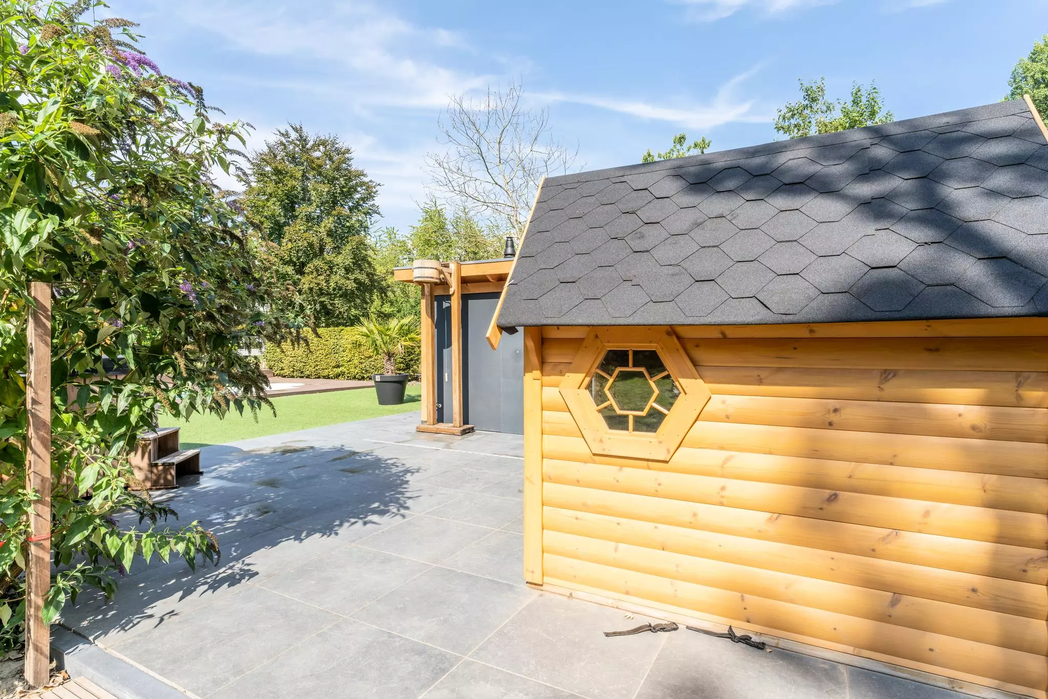 Ce trio de Glamping Lodges est regroupé en bordure d'un grand terrain de jeux et de sports en pleine nature et peut accueillir des groupes jusqu'à 18 personnes. Un endroit parfait pour 3 familles. C'est également un endroit approprié pour une sortie d'équipe (bâtiments) dans la nature. En reliant les grandes tables de pique-nique extérieures, tout le monde peut manger dehors et créer un sentiment d'intimité en pleine nature, après quoi vous pouvez décider de faire un feu de camp ou d'aller tous à la piscine ! Pour les vrais amateurs de bien-être, nous disposons d'un écobien-être avec sauna et douche à effet de pluie, d'une piscine chauffée supplémentaire et d'un bain à remous pour 10 personnes, que vous pouvez réserver pour un usage privé !
