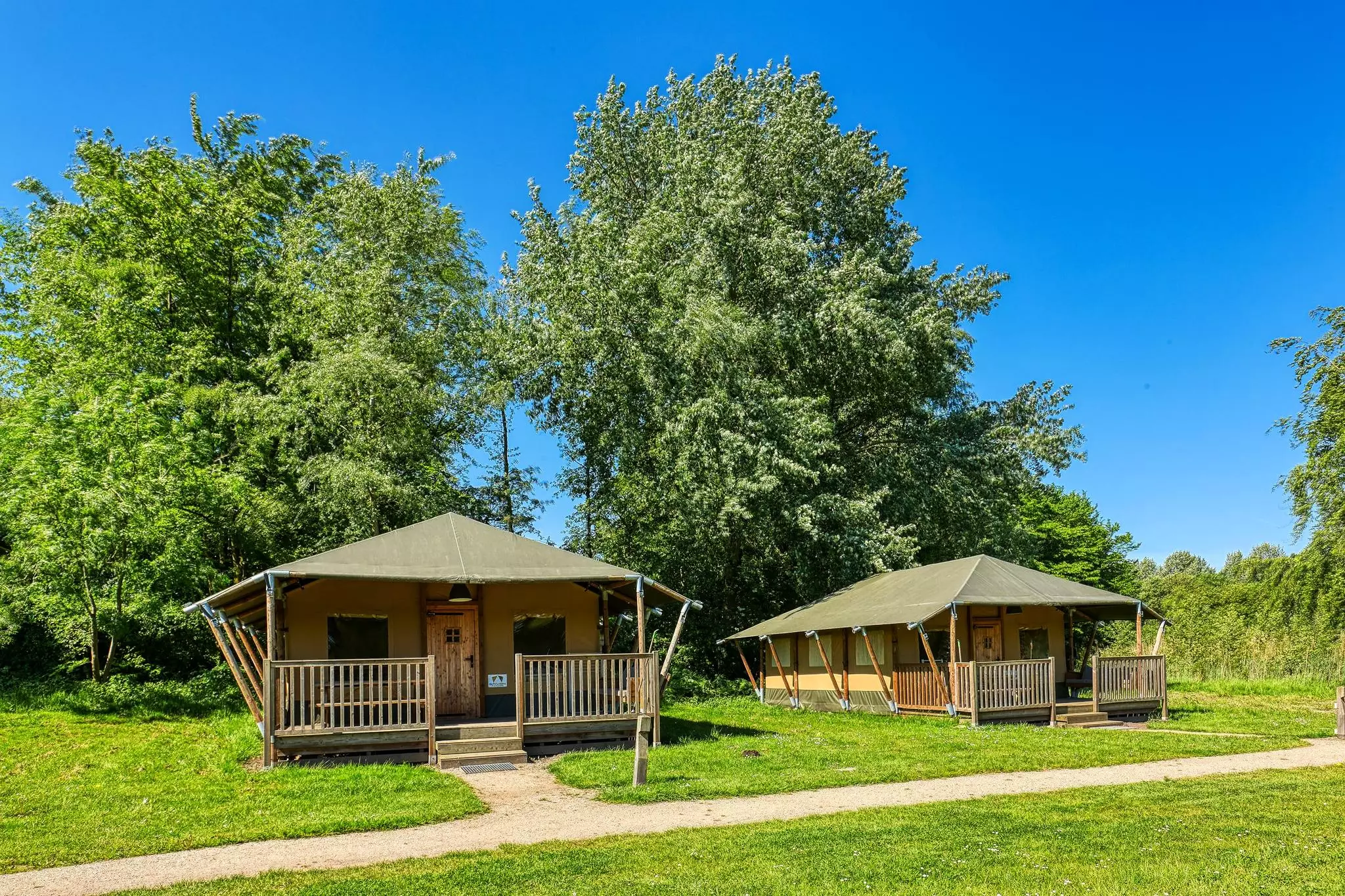 Cette combinaison de Tiny Houses et de tente safari est située au bord d'un grand terrain de jeux et de sport, en pleine nature. C'est l'endroit idéal pour deux familles accueillant les grands-parents, ou lorsque des amis, cousins ou cousines viennent passer la nuit.