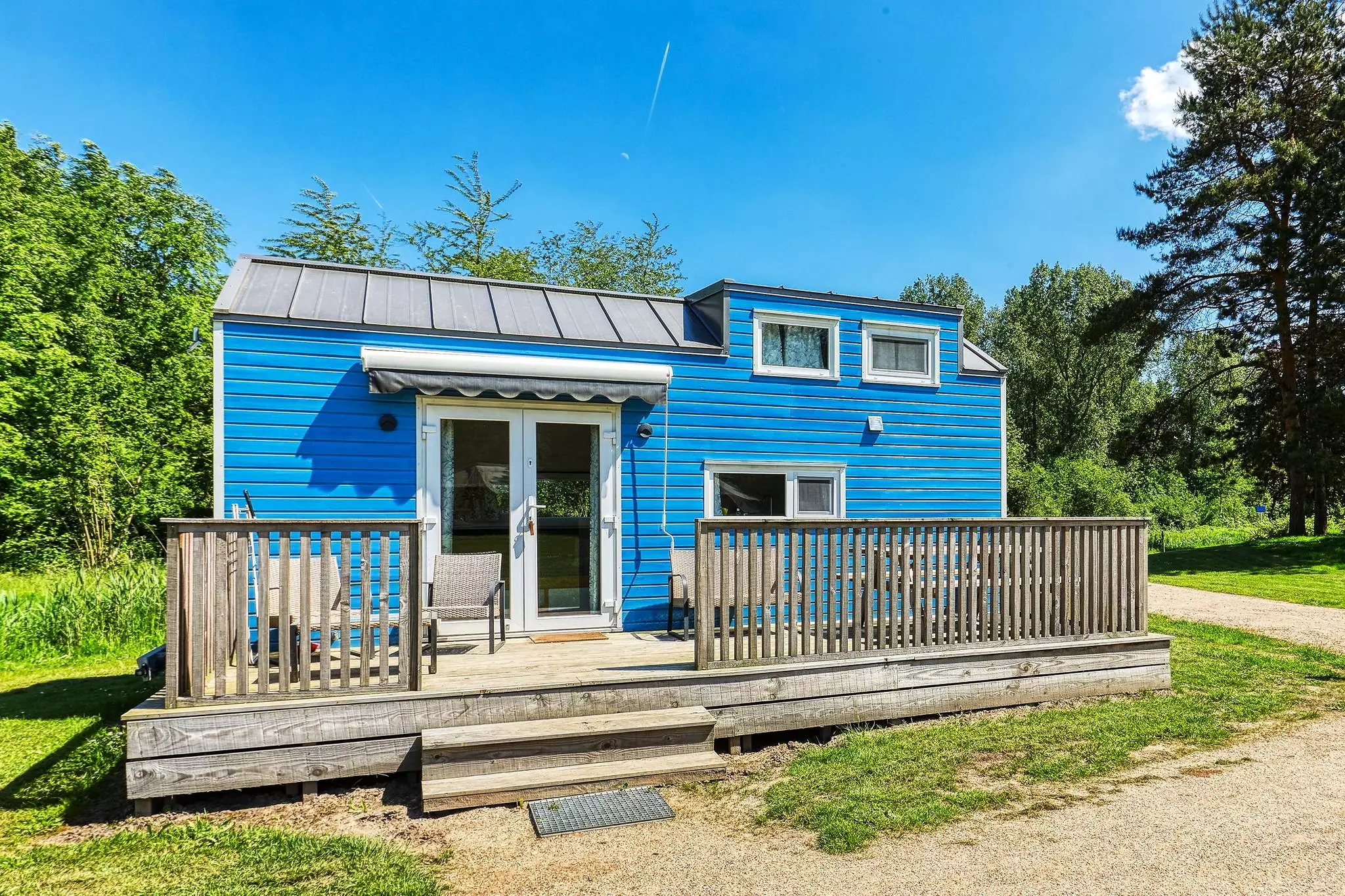 La Tiny House dispose de beaux lits, d'une cuisine luxueuse, d'une douche et d'installations sanitaires, et peut accueillir jusqu'à 5 personnes ! La vue dégagée sur le terrain de jeu, admirable depuis la véranda avec table de pique-nique et canapé, fait que vous n'avez pas du tout l'impression d'être sur un camping, et de cet endroit, vous avez également une vue sur de magnifiques couchers de soleil. Quelle tranquillité et quel sentiment de sécurité !