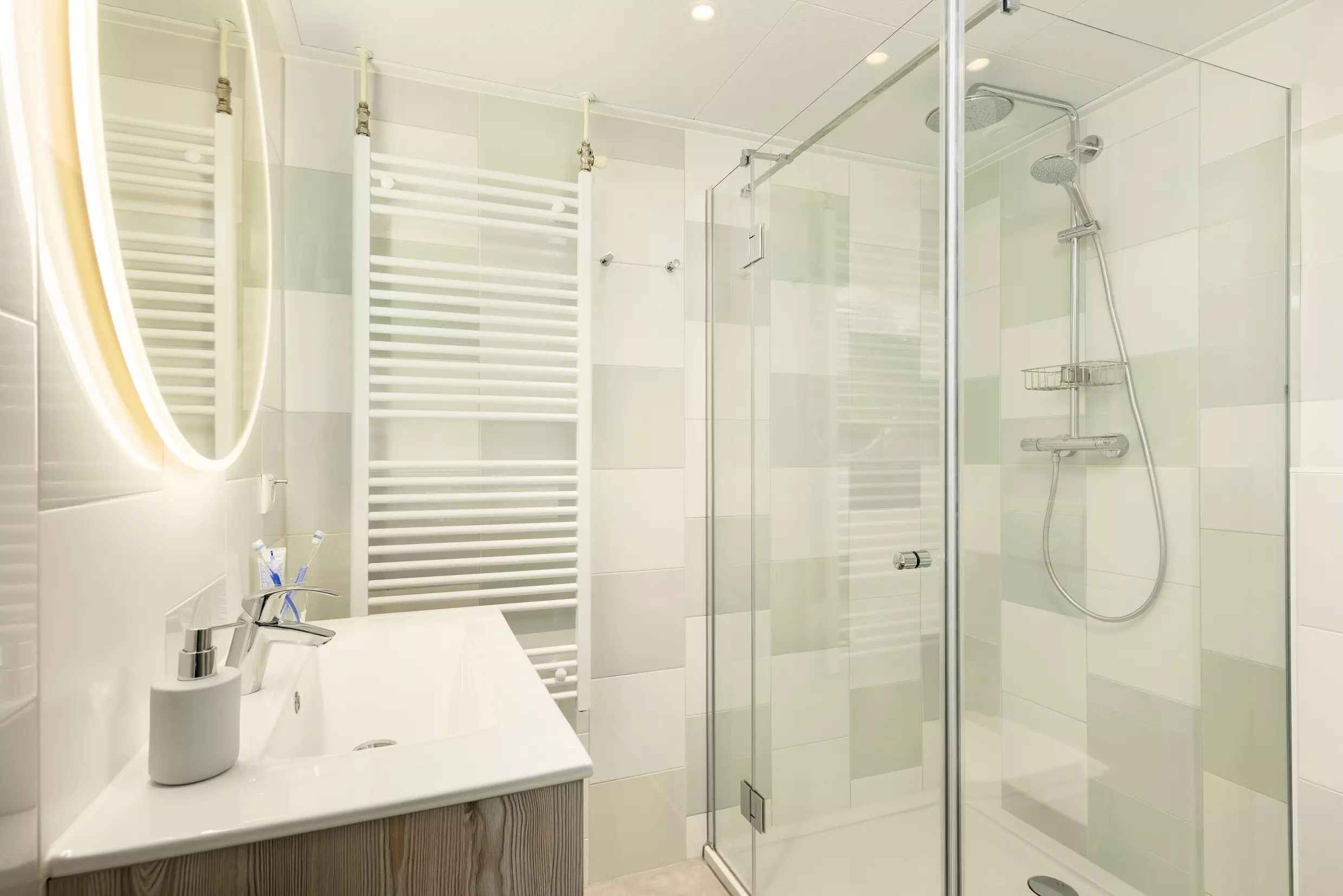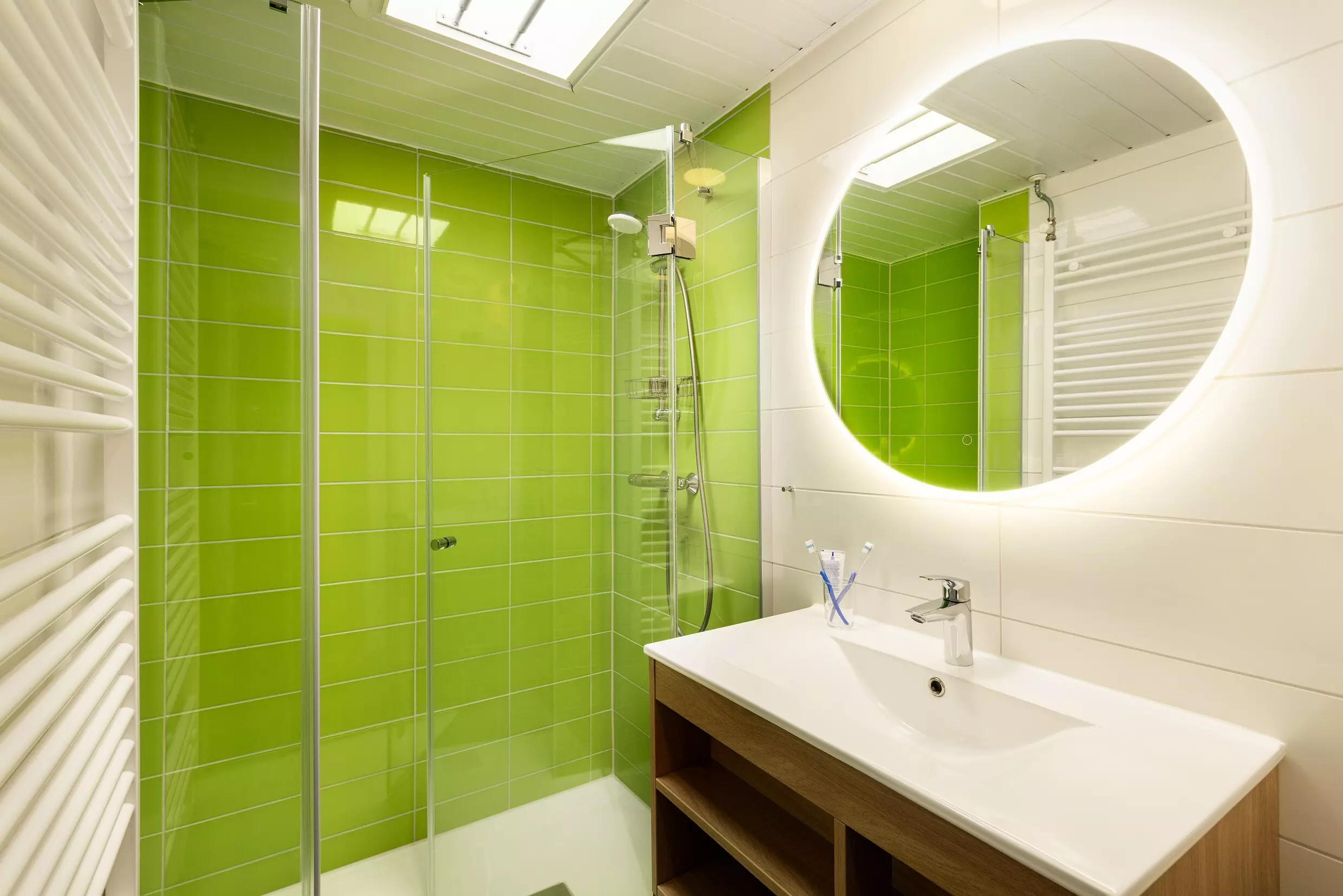 - Salle de bain avec baignoire à remous, douche de pluie et sauna à infrarouge