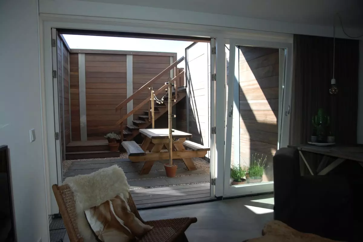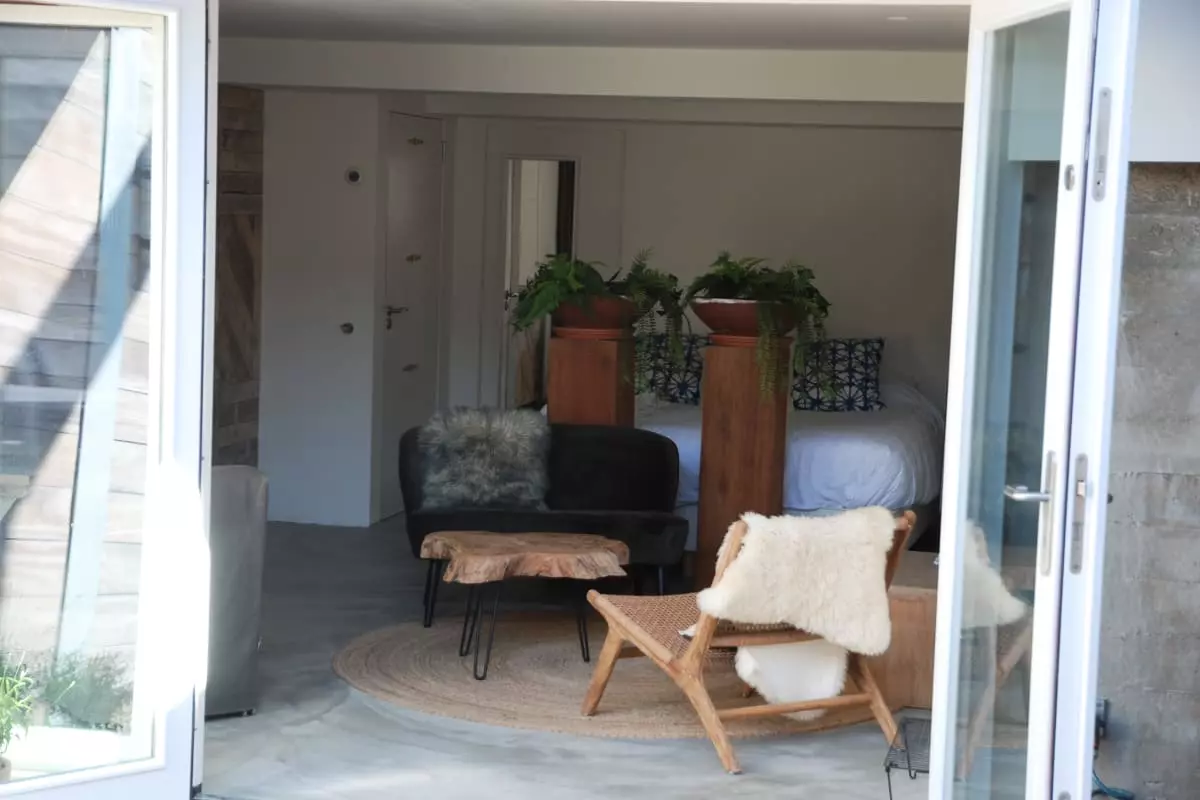 Son emplacement est idéal : **juste derrière la plage** ! Vous pourrez avoir les pieds dans le sable en moins d’une minute. Un petit patio privé avec une table de pique-nique se trouve à côté du studio, parfait pour profiter d’un moment en extérieur (si le climat néerlandais le permet).