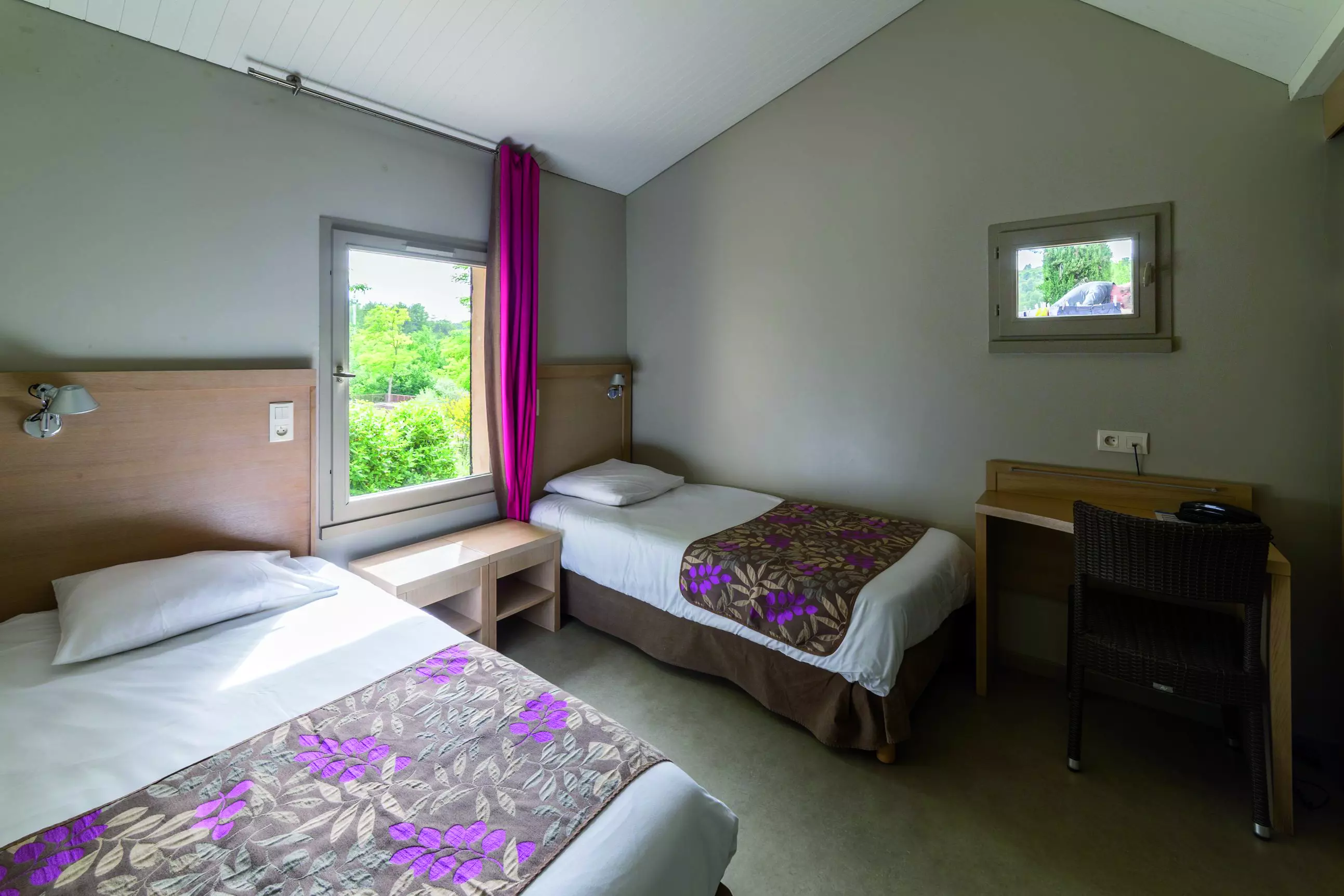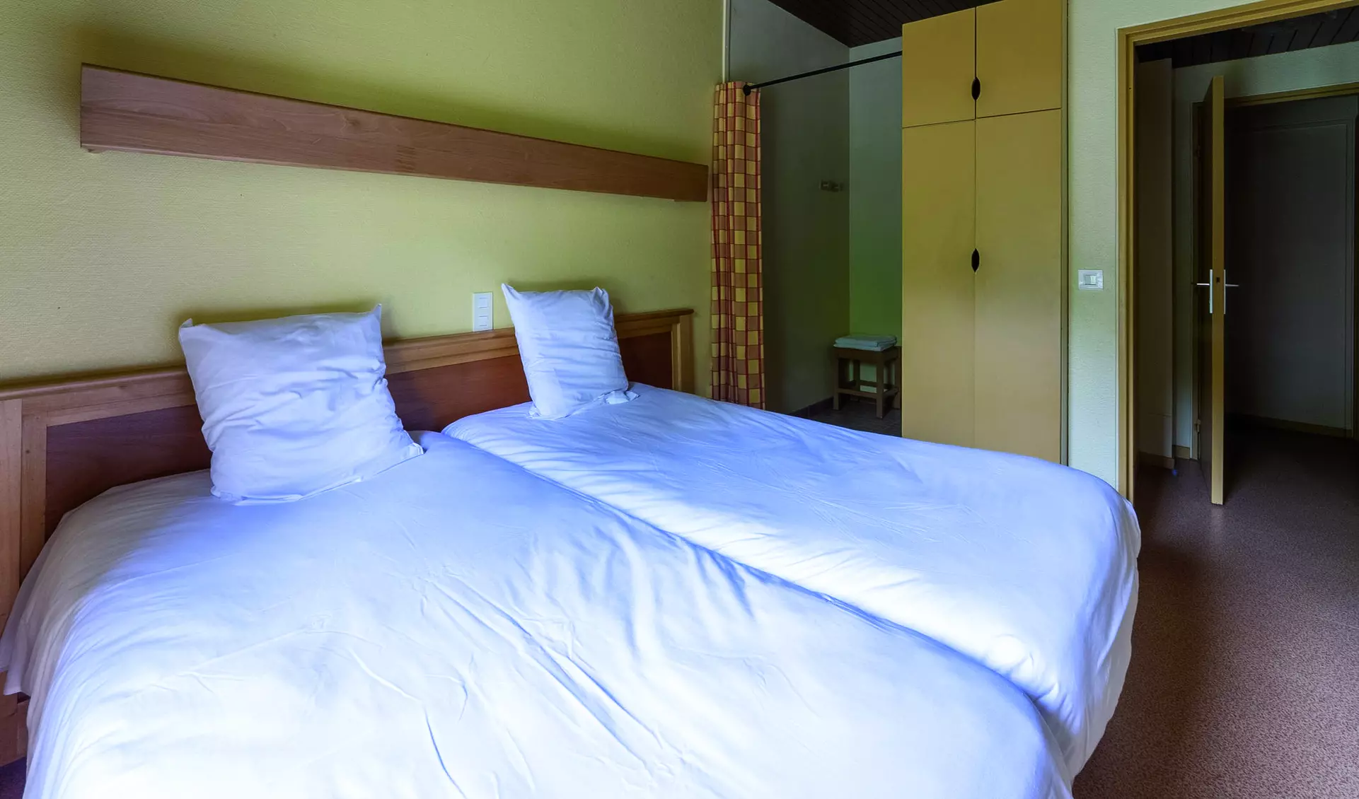 Chambre avec lit double, chambre avec 2 lits simples et chambre avec 2 lits superposés.