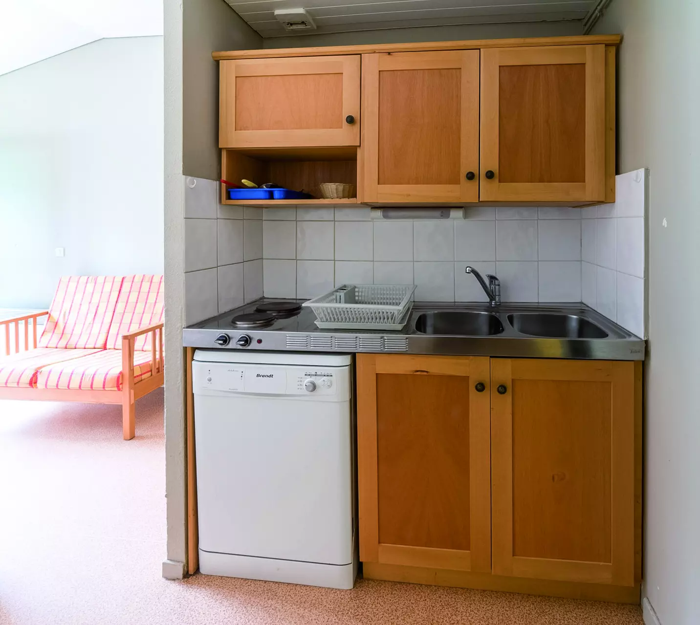 À noter : la banquette est recommandé pour un enfant de -12 ans.L'équipement comprend 2 plaques électriques, un four à micro-ondes, une cafetière, un grille-pain, un autocuiseur et une télévision.