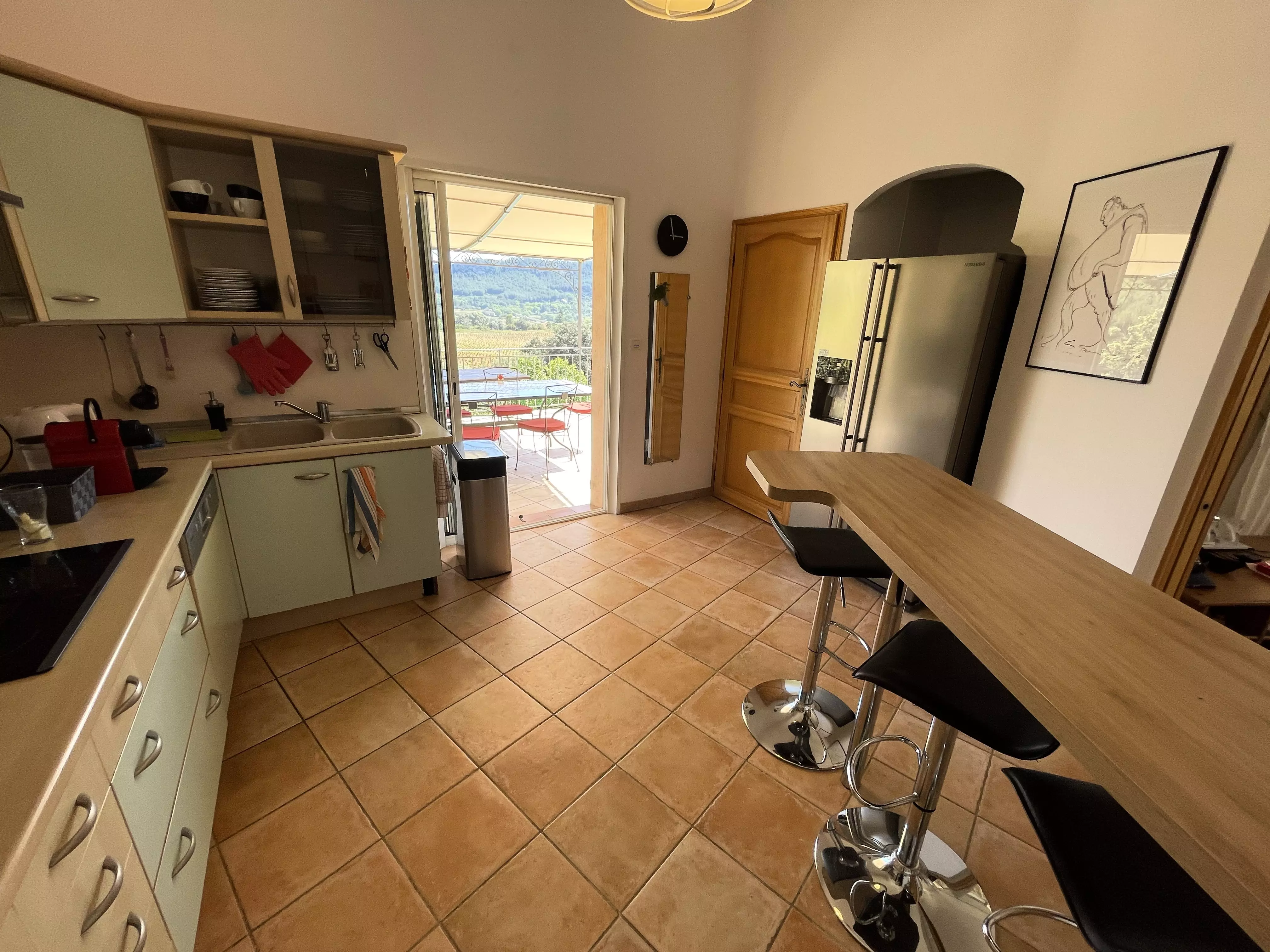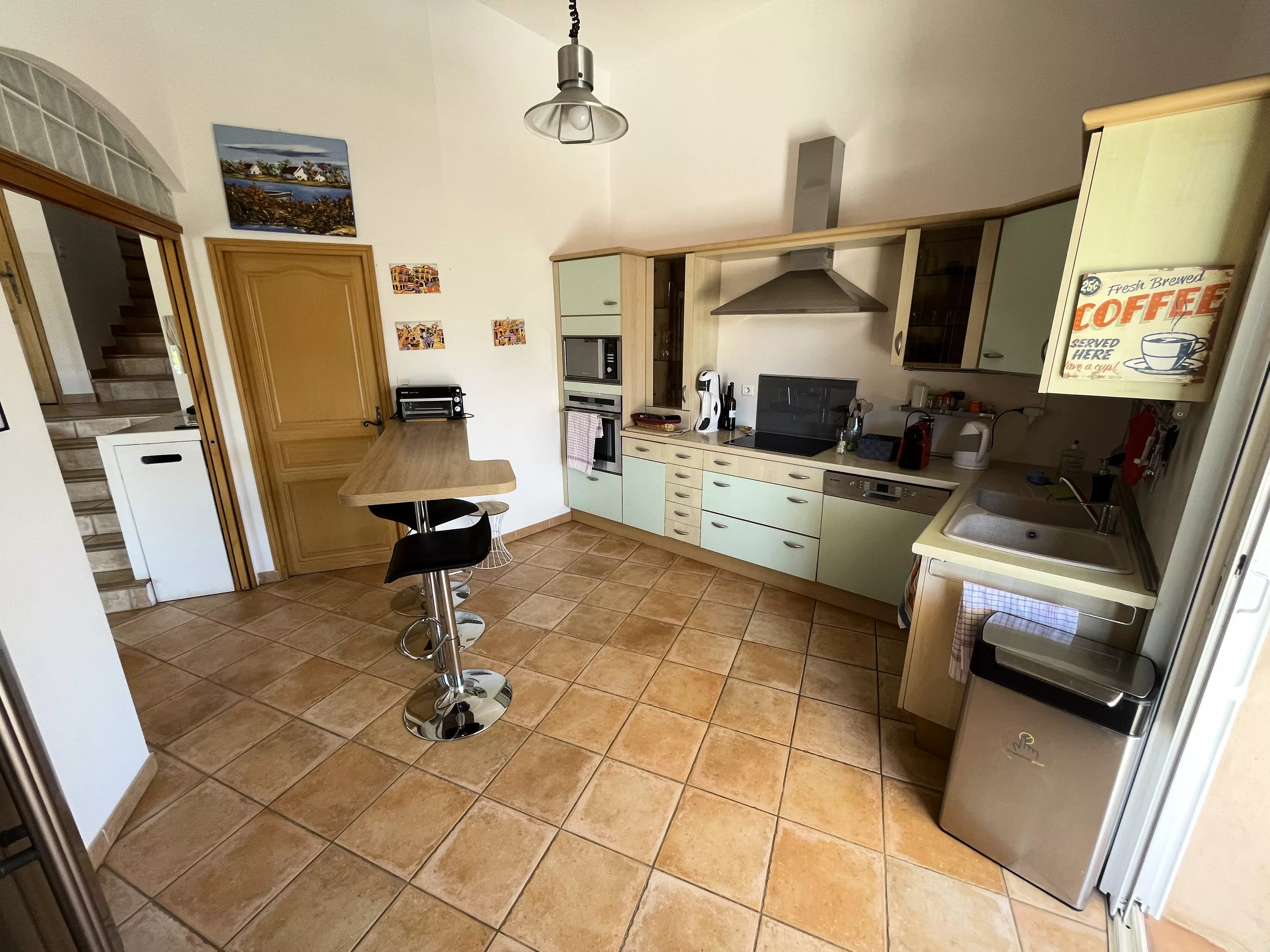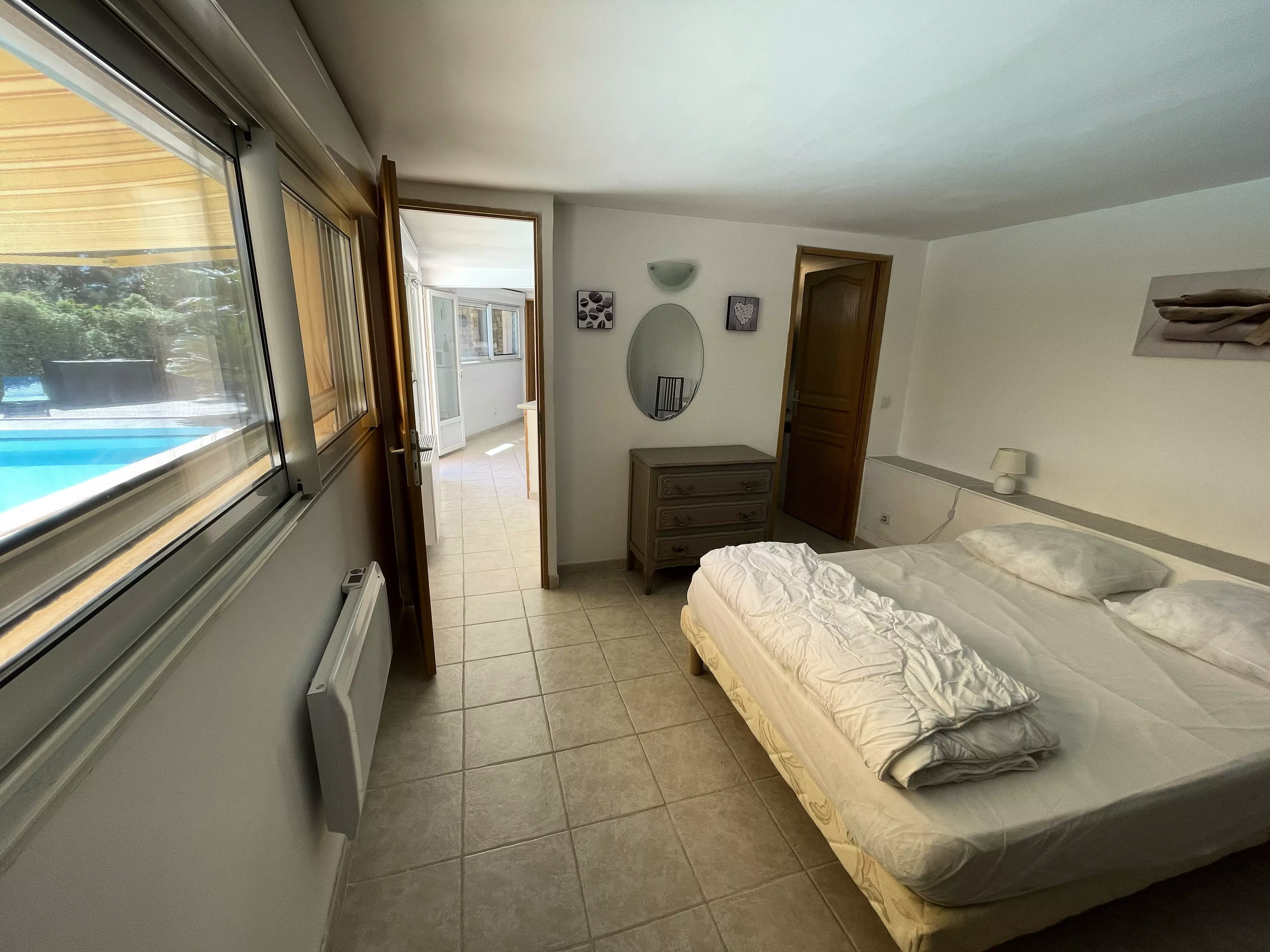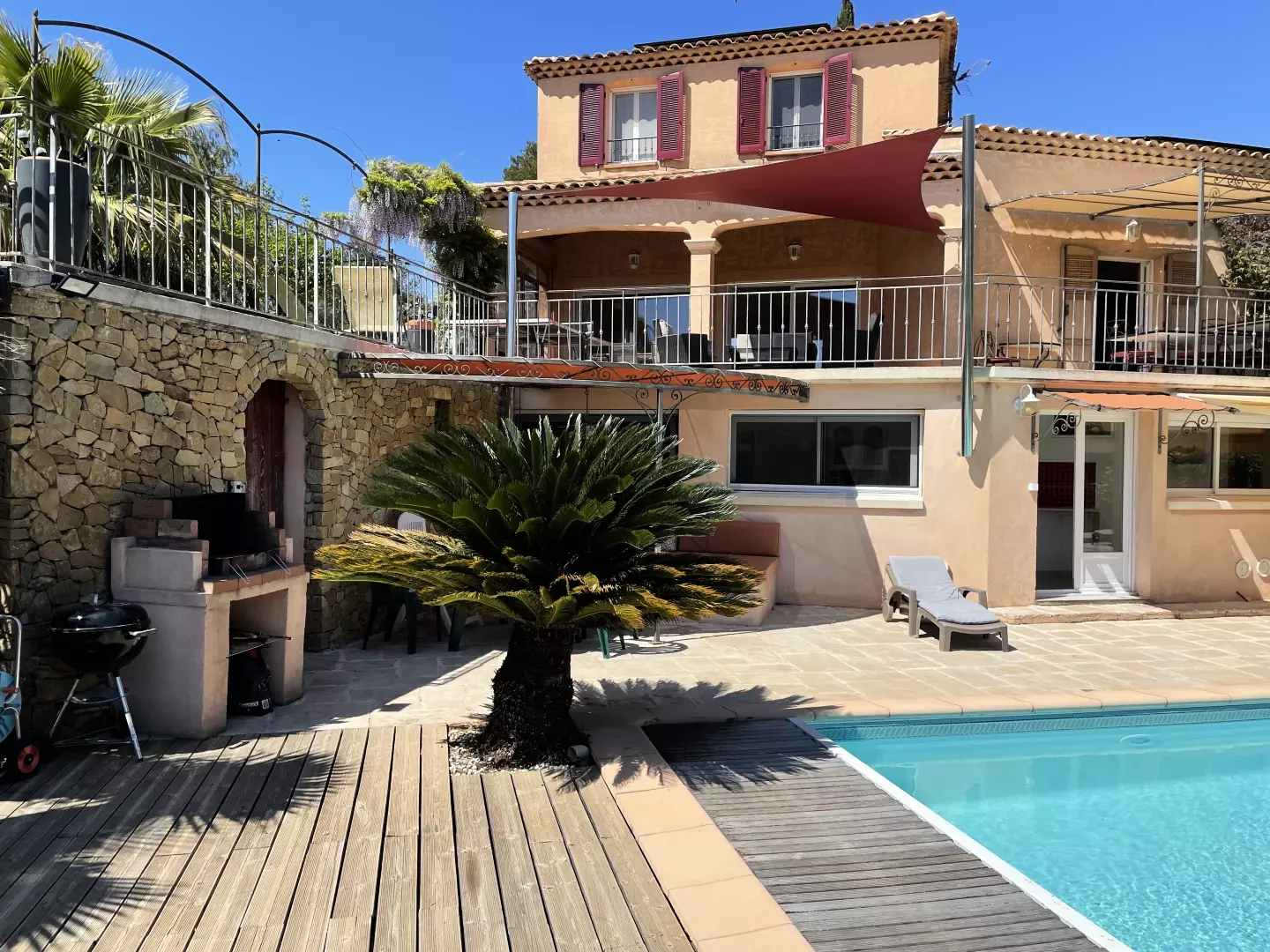 Les atouts de votre location : Cette villa avec vue sur les vignes offre un cadre idéal pour des vacances en famille ou entre amis. Elle dispose d'un rez-de-chaussée avec une chambre, de deux chambres à l'étage et d'un pool house au niveau de la piscine avec deux chambres équipées d'un rafraîchisseur d'air. Profitez d'un sol rafraîchissant dans la maison principale et d'une terrasse couverte orientée sud-est avec vue sur le jardin, barbecue, table extérieure et 10 chaises. Les amateurs de loisirs apprécieront le terrain de pétanque, le baby-foot, la table de tennis de table et la piscine privée. Plusieurs places de stationnement avec zones d'ombre et une borne de recharge pour véhicule électrique complètent ce logement pratique et convivial pour un séjour inoubliable.