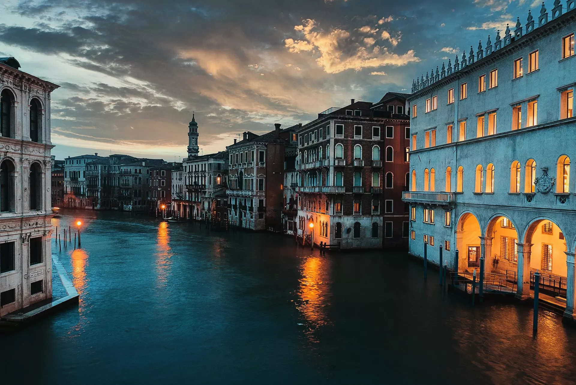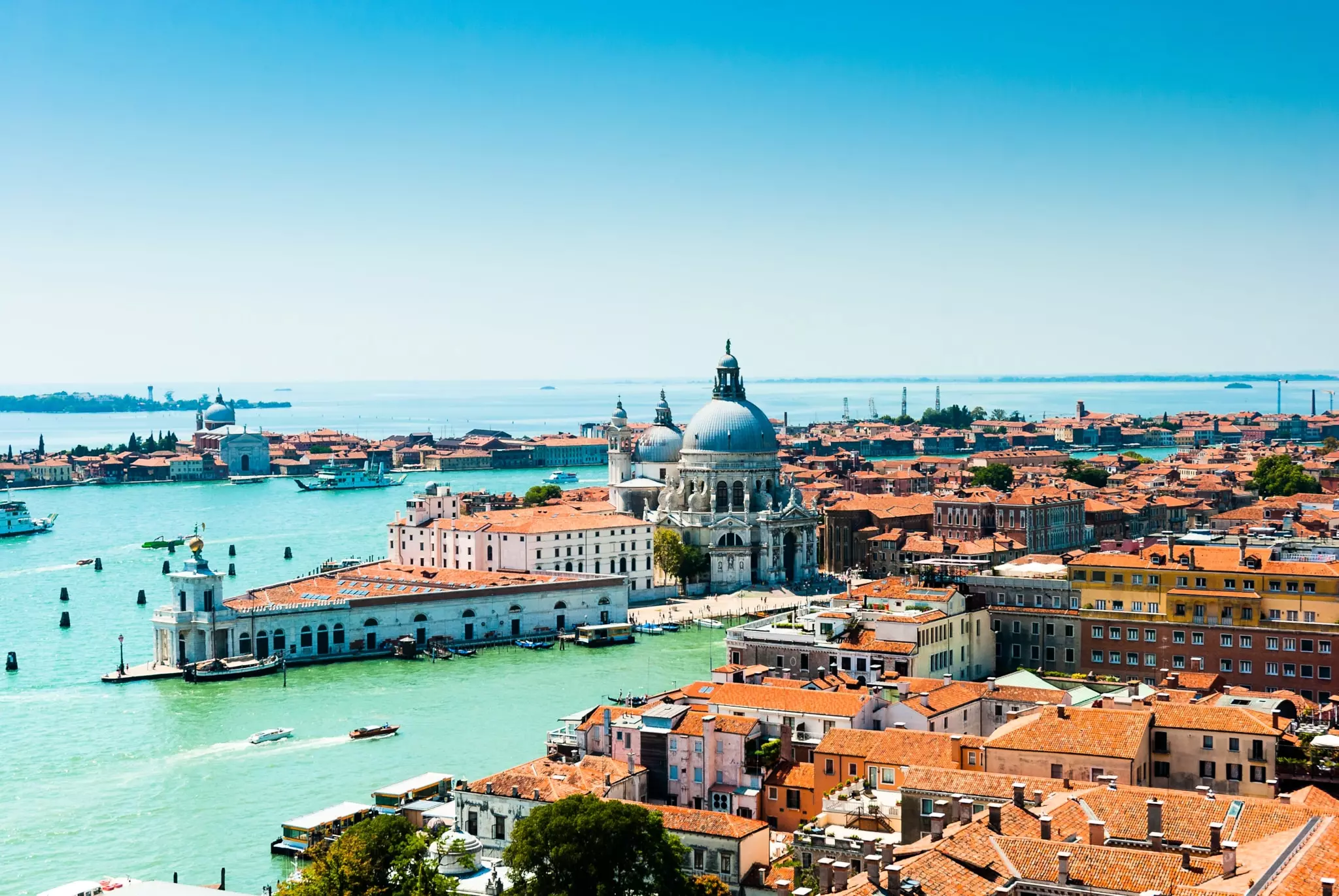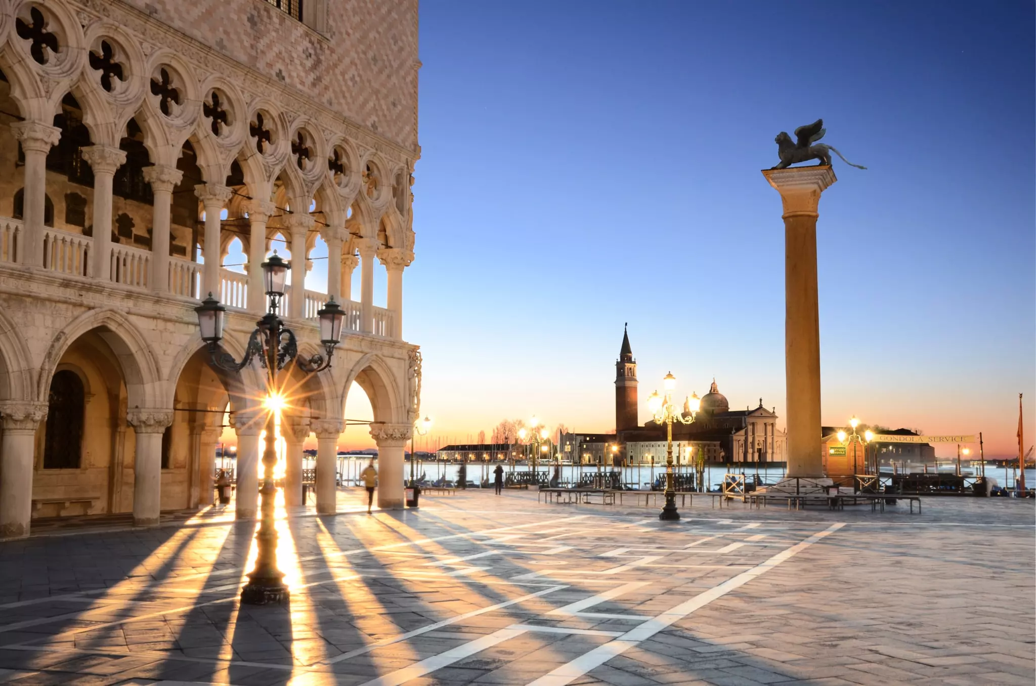 À l'arrière-plan, dans tout son charme, le profil élégant de Venise.