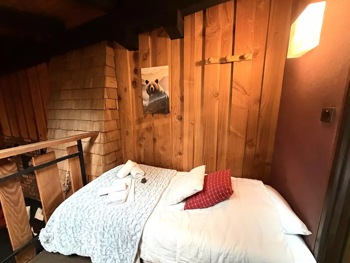 - Chambres : Une chambre équipée d'un lit double 140 cm x 190 cm, une mezzanine comportant un lit simple 90 cm x 190 cm