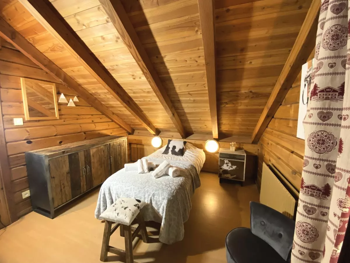 - Salon/Séjour : Espace chaleureux avec canapé confortable, cheminée, télévision à écran plat Smart TV connectée et coin repas, idéal pour se détendre en famille ou entre amis