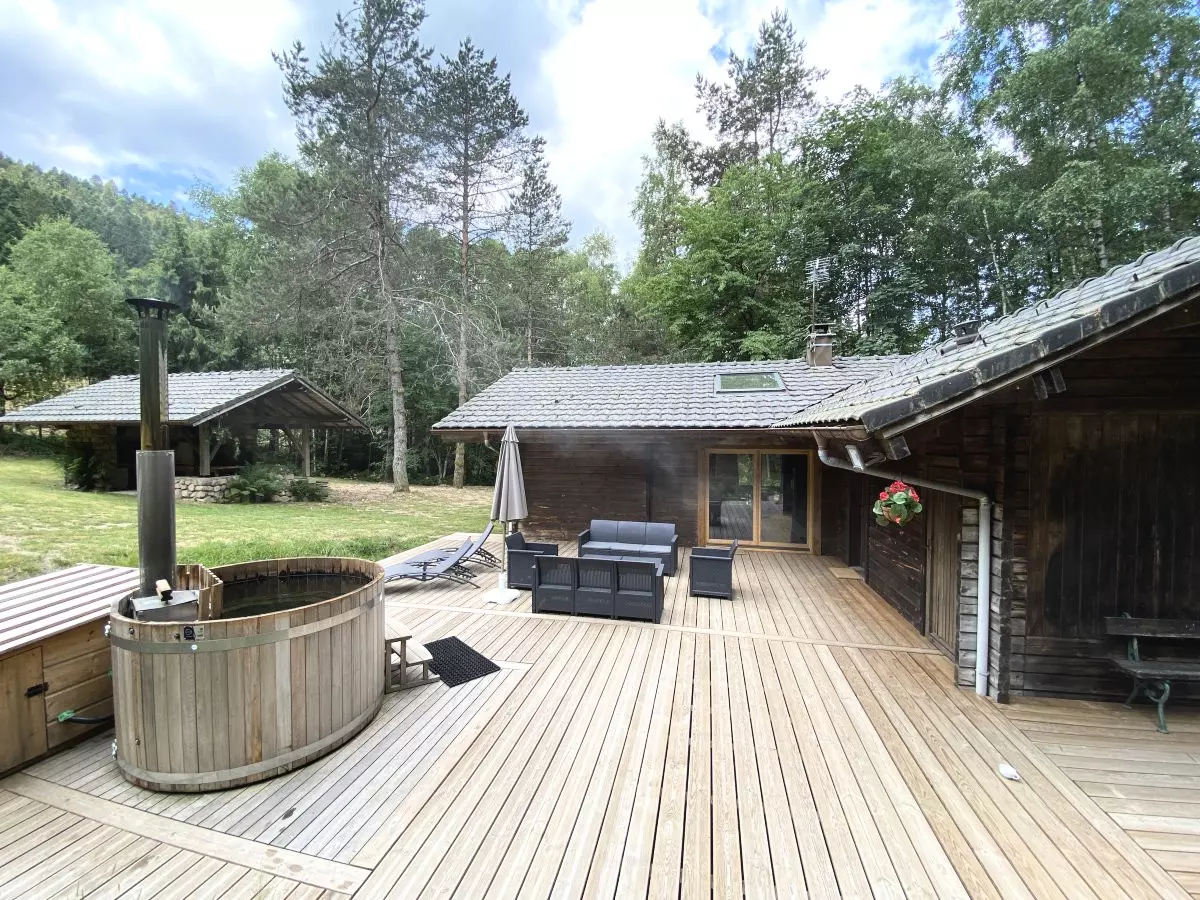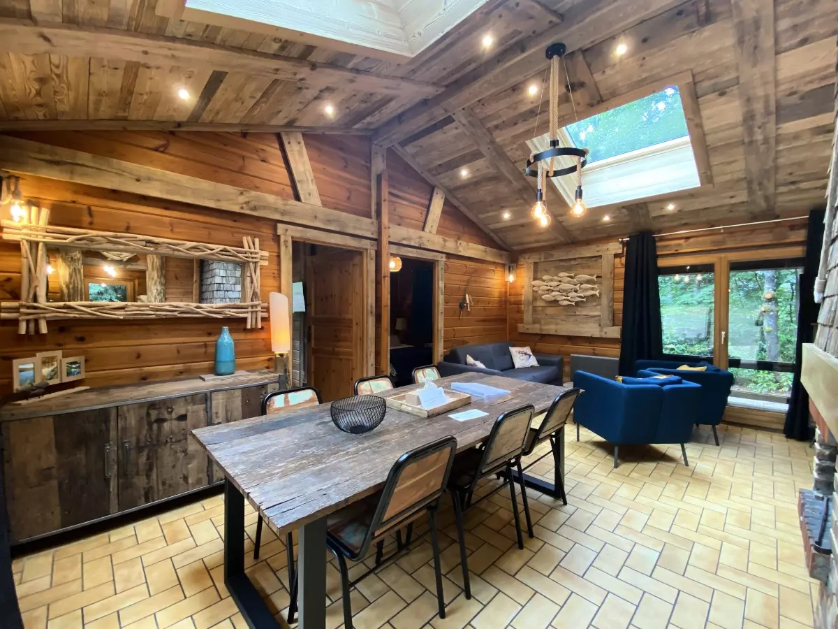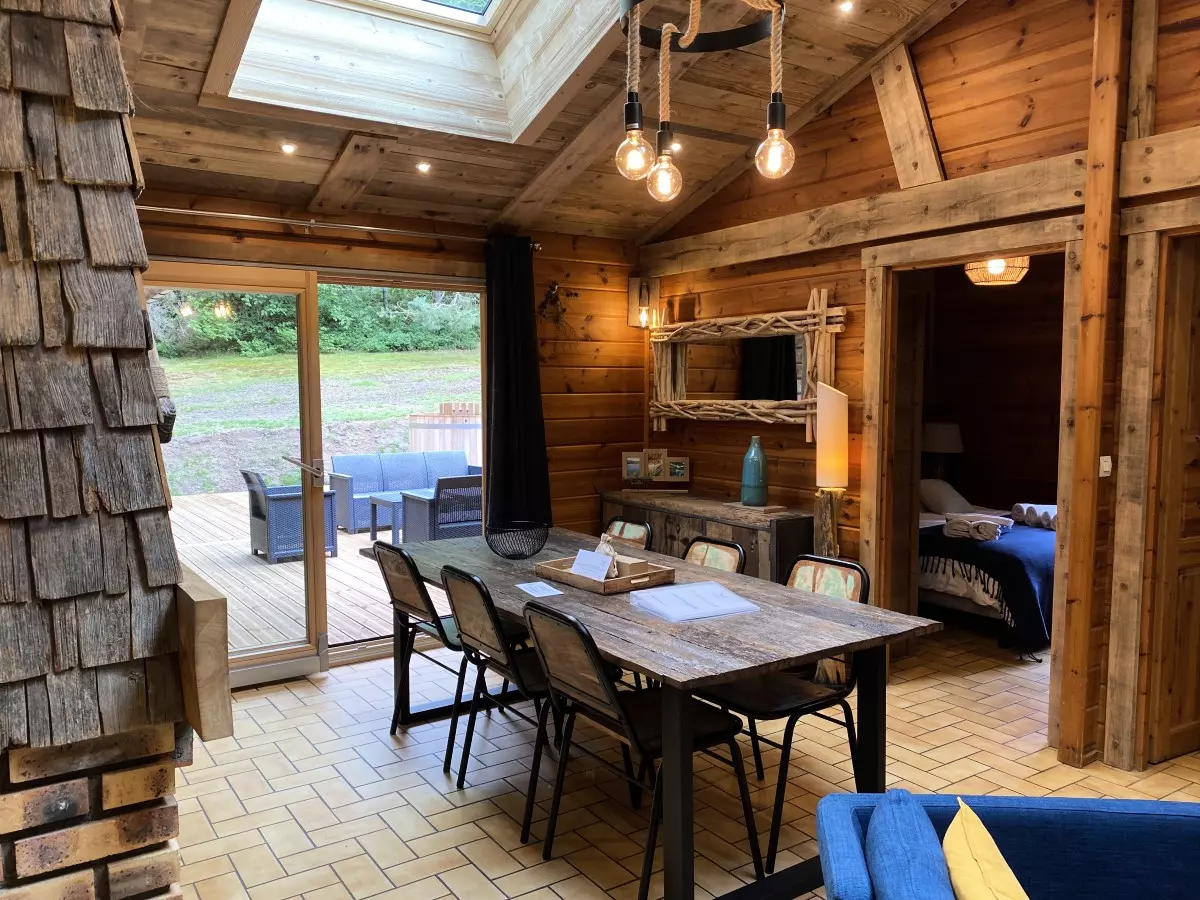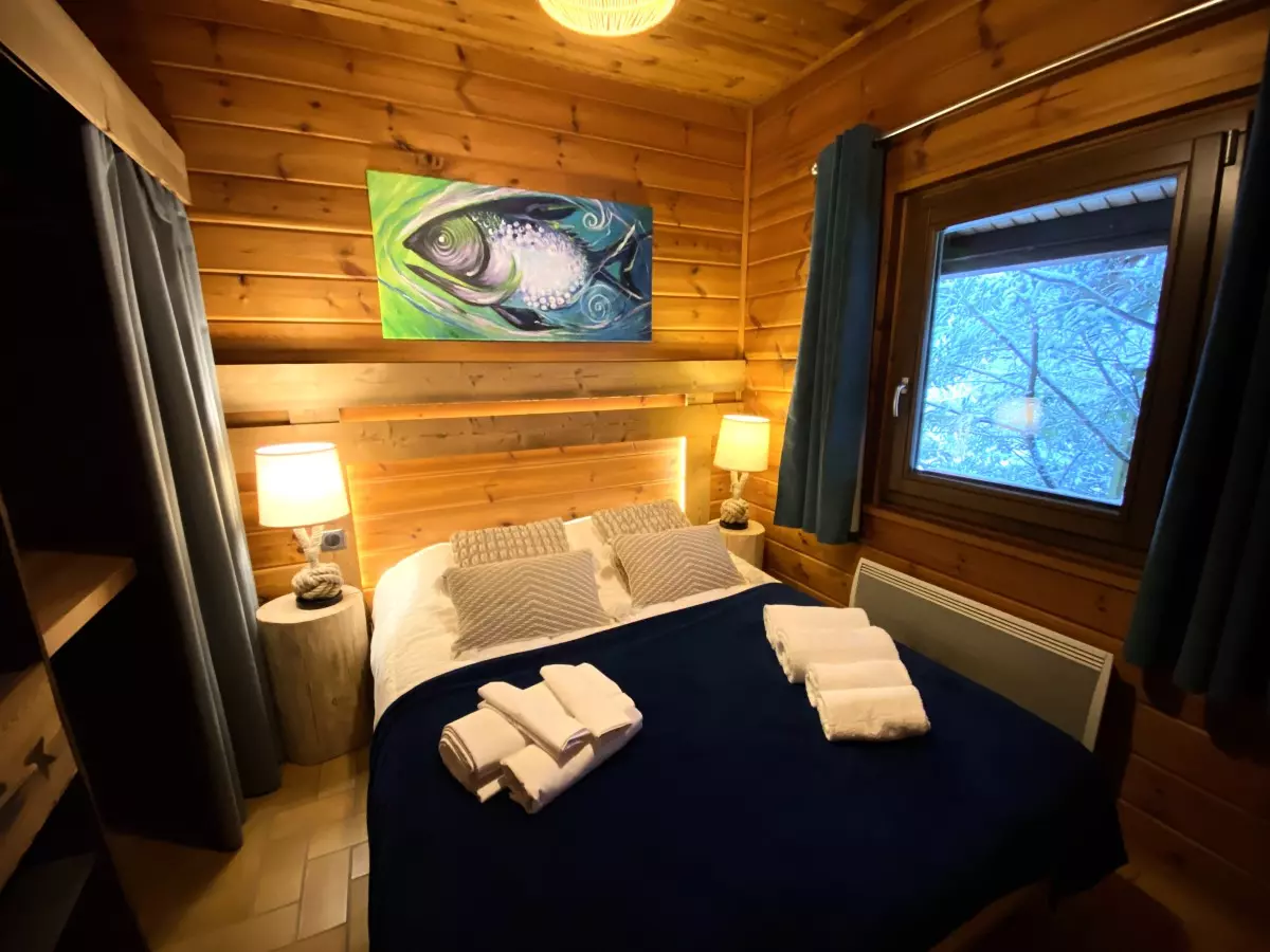 Le Fishing Lodge est un chalet en bois conçu pour accueillir de 2 à 6 personnes. Situé en pleine nature sur un terrain privé de 5000 m² à 690 mètres d'altitude, il offre un cadre paisible et verdoyant. Son esprit pêche et nature saura vous séduire et vous évader. La location de 65 m² en plain-pied comporte 3 chambres et deux salles de bains dont une avec baignoire balnéo ainsi qu'un vaste séjour salon avec cheminée. Vous trouverez à l'extérieur un barbecue couvert, une grande terrasse avec salon de jardin et un spa finlandais en bois privé ouvert toute l'année idéal pour la détente.