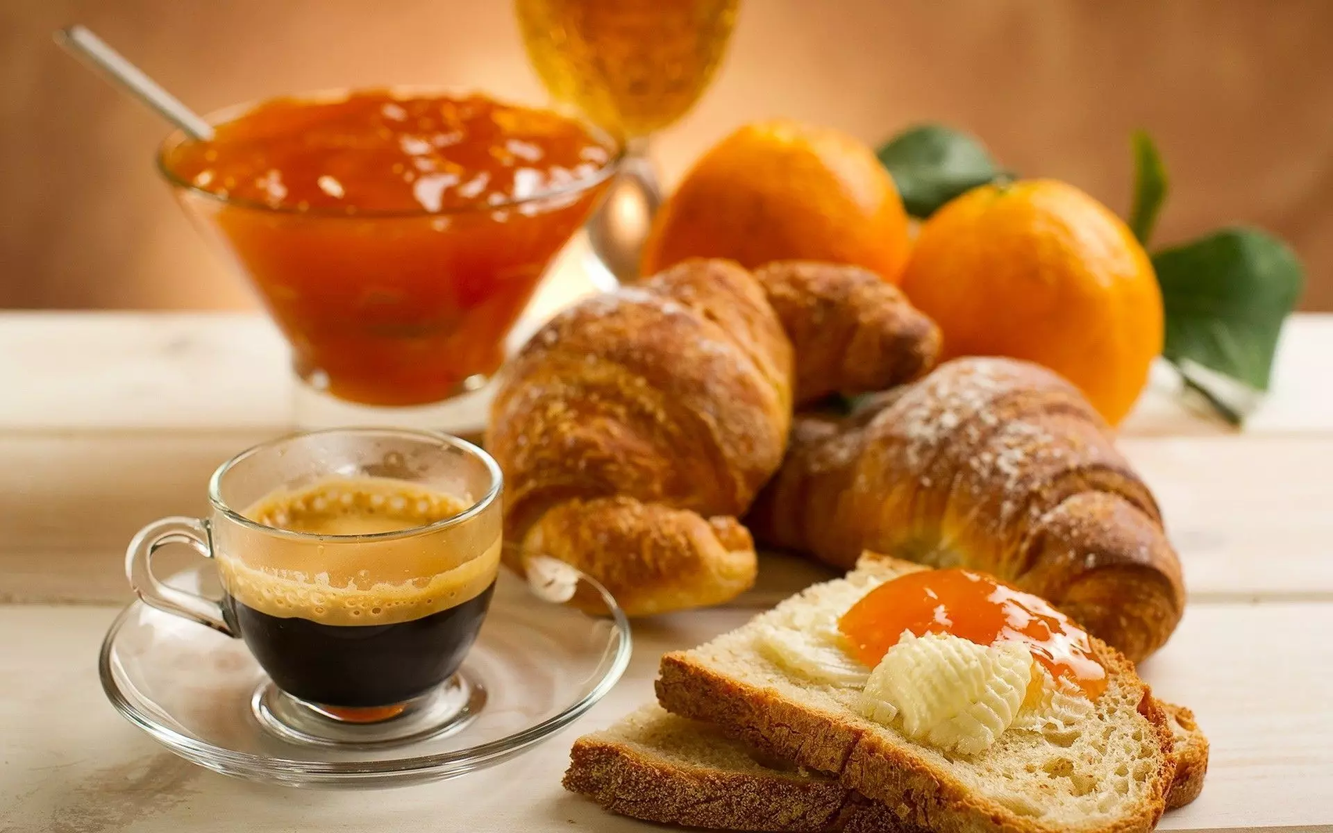- Petit-déjeuner livré chaque matin, comprenant une demi-baguette traditionnelle, une viennoiserie au choix, un kit pour boisson chaude (café, thé ou chocolat), jus d'orange, beurre, confiture et pâte à tartiner sur demande.