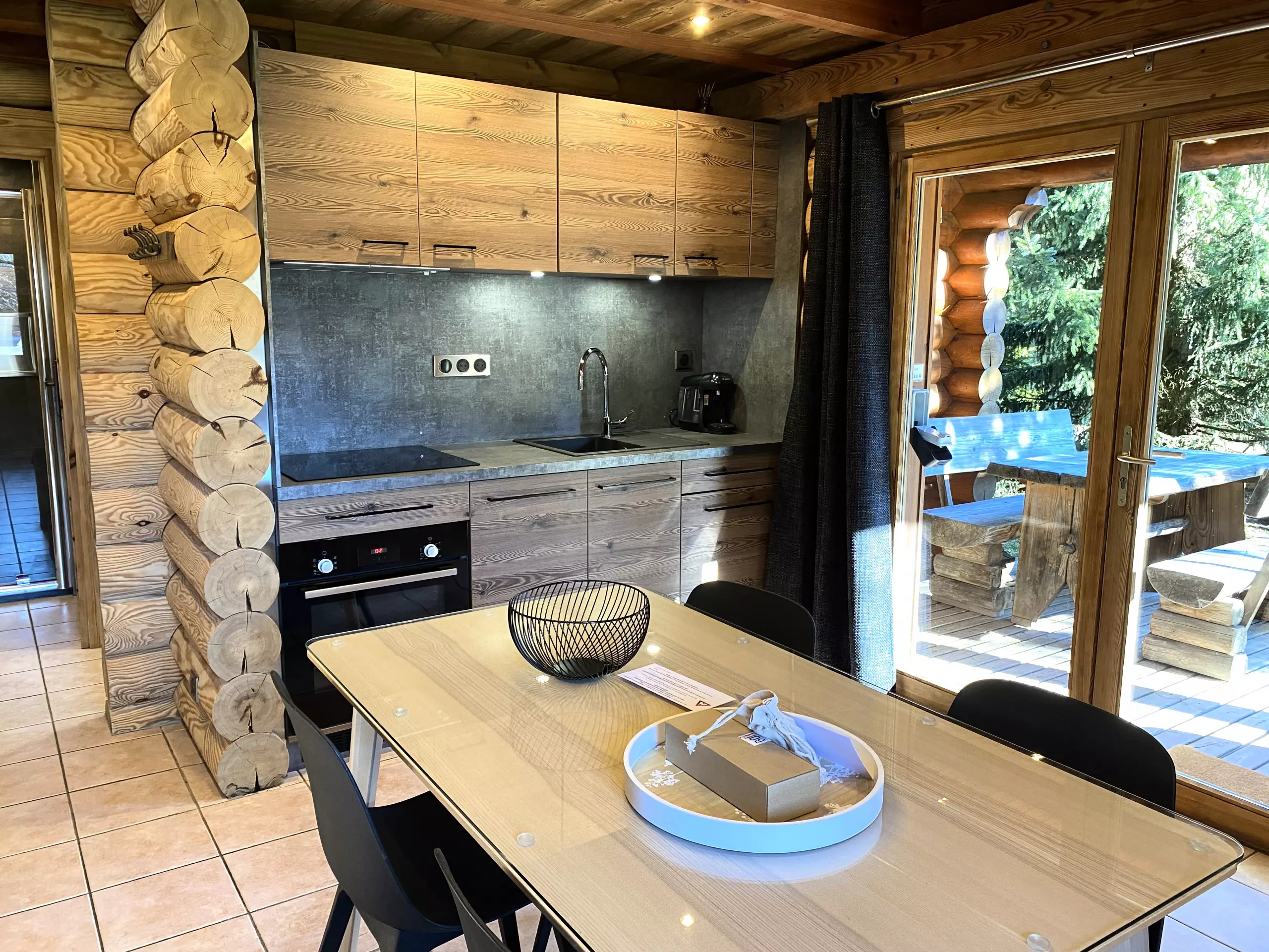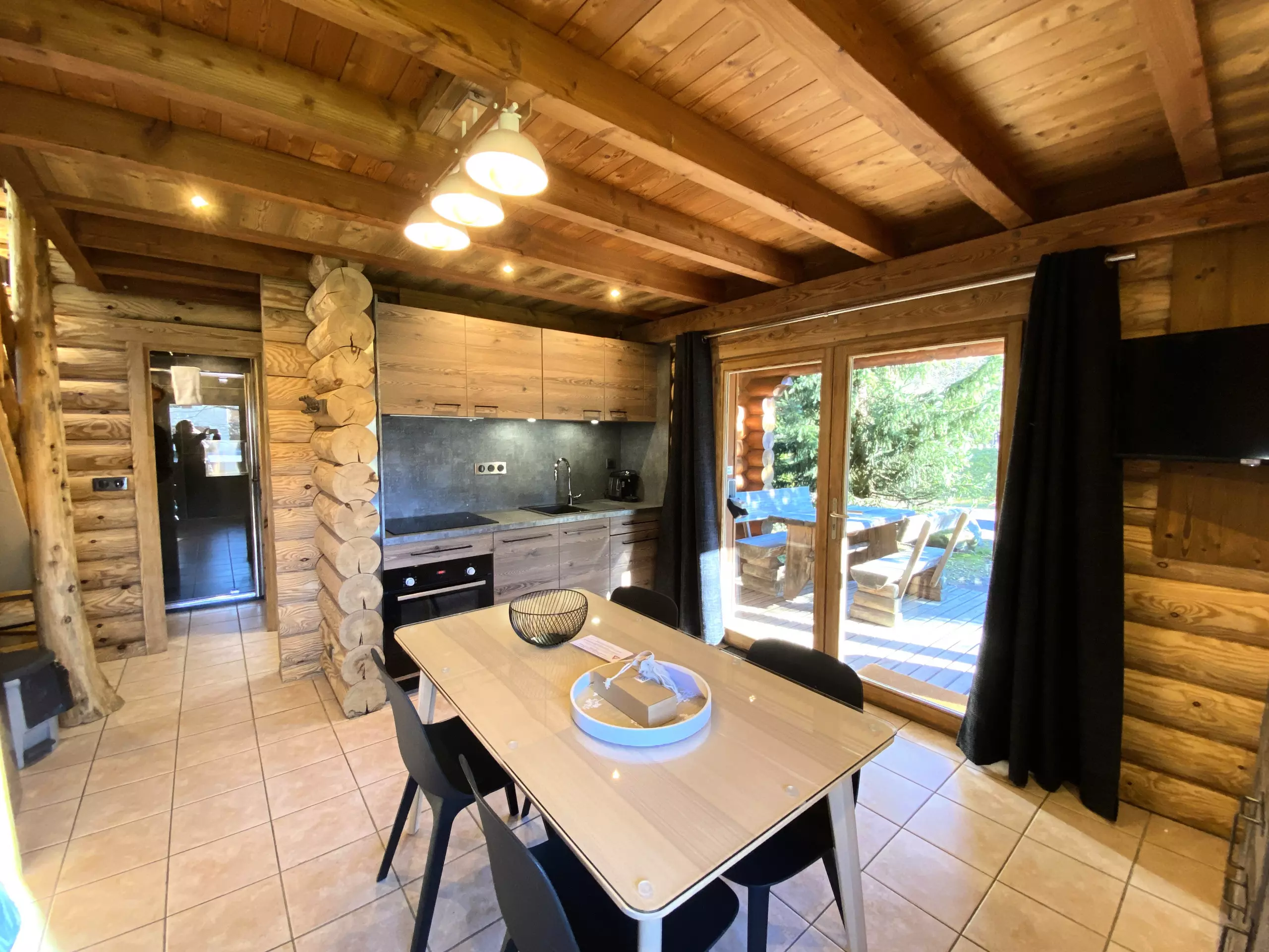 - Terrasse en bois avec mobilier de jardin pour profiter des repas en plein air.