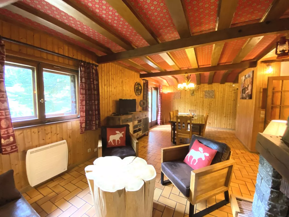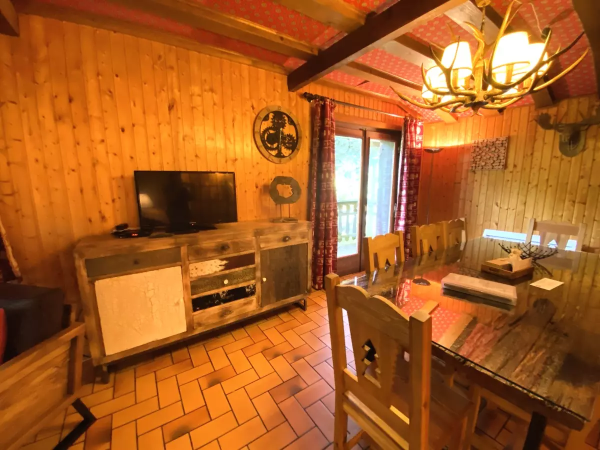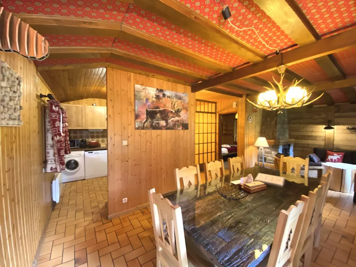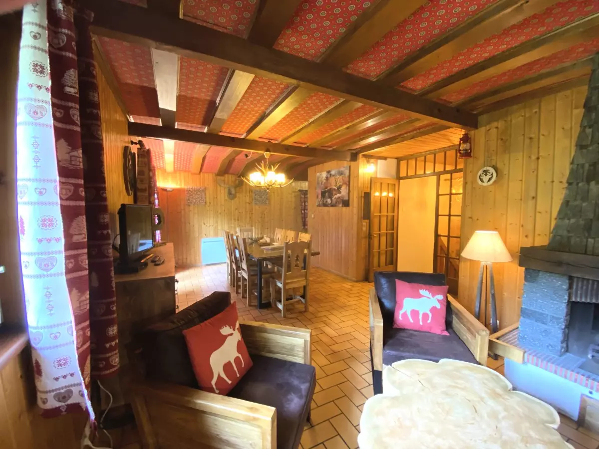 - Salon/Séjour : Espace chaleureux avec canapé confortable, cheminée, TV à écran plat et coin repas, idéal pour se détendre en famille ou entre amis