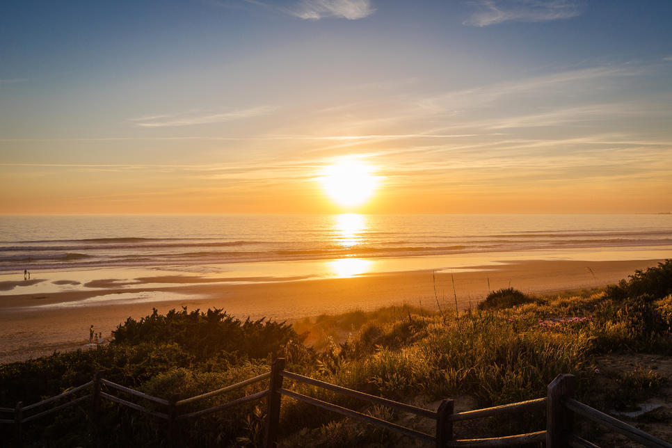 plage de sable "La Barrosa" : accessible par un escalier, chaises longues*, parasols*