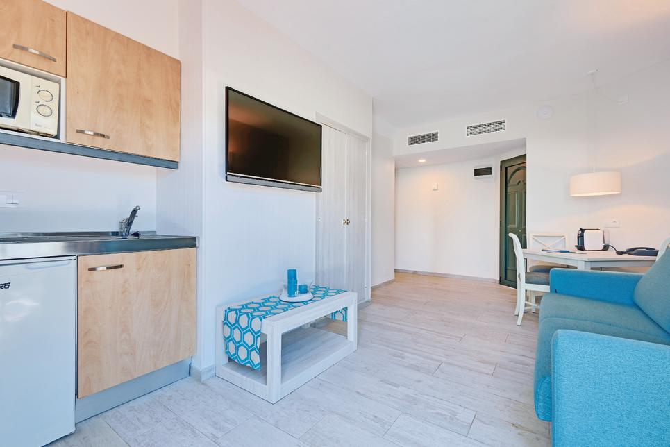 Construit dans le style typique des villages de l‘île, ce complexe d’appartement est idéal pour un séjour en famille. Il jouit d’une belle situation dans le centre touristique de Calan Bosch, où se trouve la plus belle plage de sable du sud-ouest de Minorque. Juste à côté de l’établissement est implanté le parc aquatique Aquarock s’étendant sur 20 000 m², et qui est entouré d’un magnifique paysage naturel. Les clients de l’hôtel y ont accès gratuitement pour profiter de ses nombreux toboggans et autres installations.