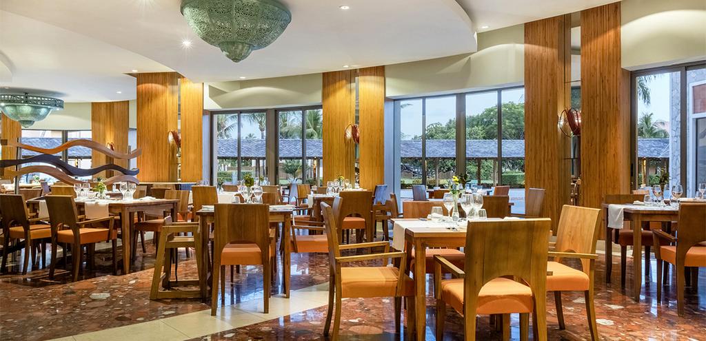- Vous pourrez prendre l’ensemble de vos repas, petit-déjeuner, déjeuner et dîner, au restaurant buffet « Pelô». Vous découvrirez un large choix de spécialités locales et internationales avec des ateliers « show-cooking ».