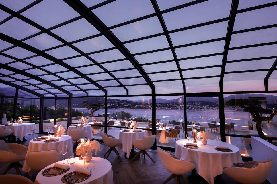 2 restaurants avec service à table : restaurant gastronomique "La Verrière" 1 étoile Michelin (pour dîner, choix de menus, avec vue panoramique, sur réservation), "La Paillotte" cuisine méditerranéenne, poissons/fruits de mer (pour déjeuner, pour dîner, à la carte, selon saison , sur réservation)