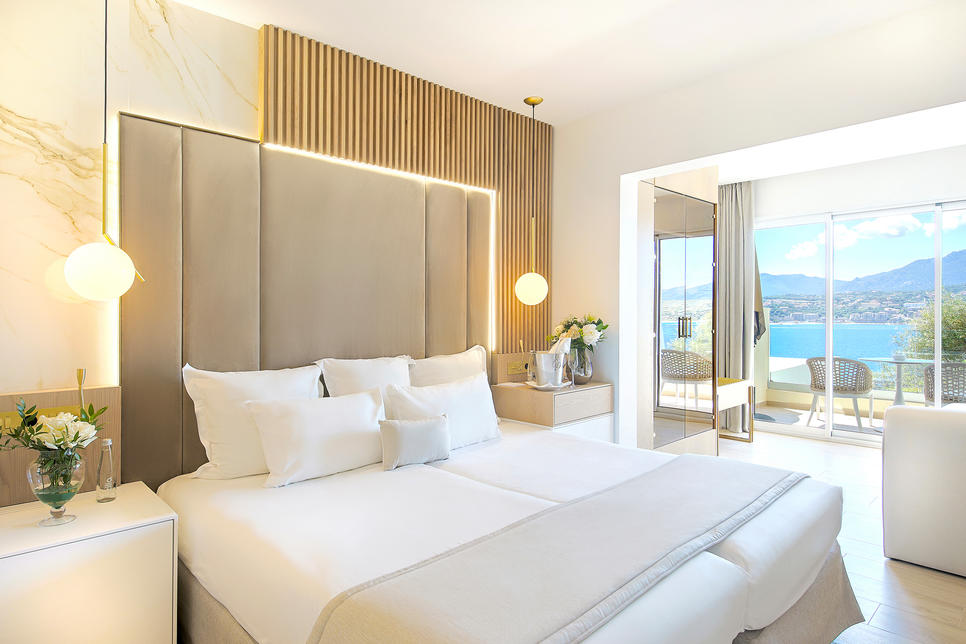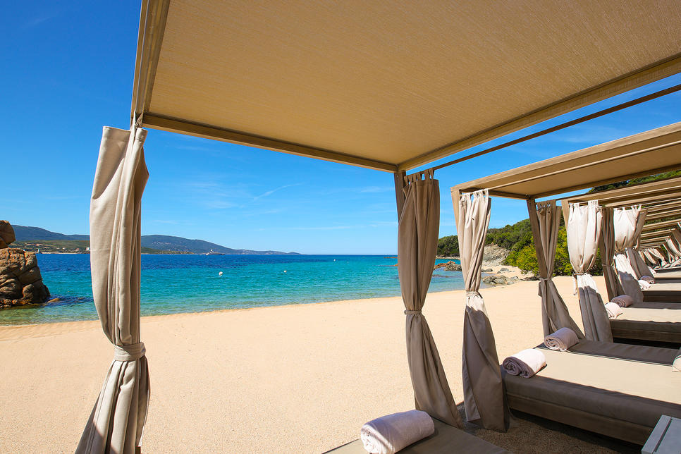 Blottie entre mer et maquis, cette propriété vous enlace d’une atmosphère apaisante et vous invite à lâcher prise dans un univers d’élégance et de délicatesse. Les chambres et les suites au design épuré, véritables cocons de douceur, révèlent toute la beauté de l’horizon marin à travers de larges baies vitrées. L’atmosphère subtile du Spa Clarins vous transporte dans un monde de bien-être et de sérénité, au même titre que les espaces de détente lovés entre les superbes piscines, les chênes-lièges et les oliviers. Un peu plus bas, la plage dorée léchée par les eaux translucides vous attend pour de précieux instants. Enfin, la proposition culinaire, fabuleusement orchestrée, cultive l’esprit corse à travers des créations divines.