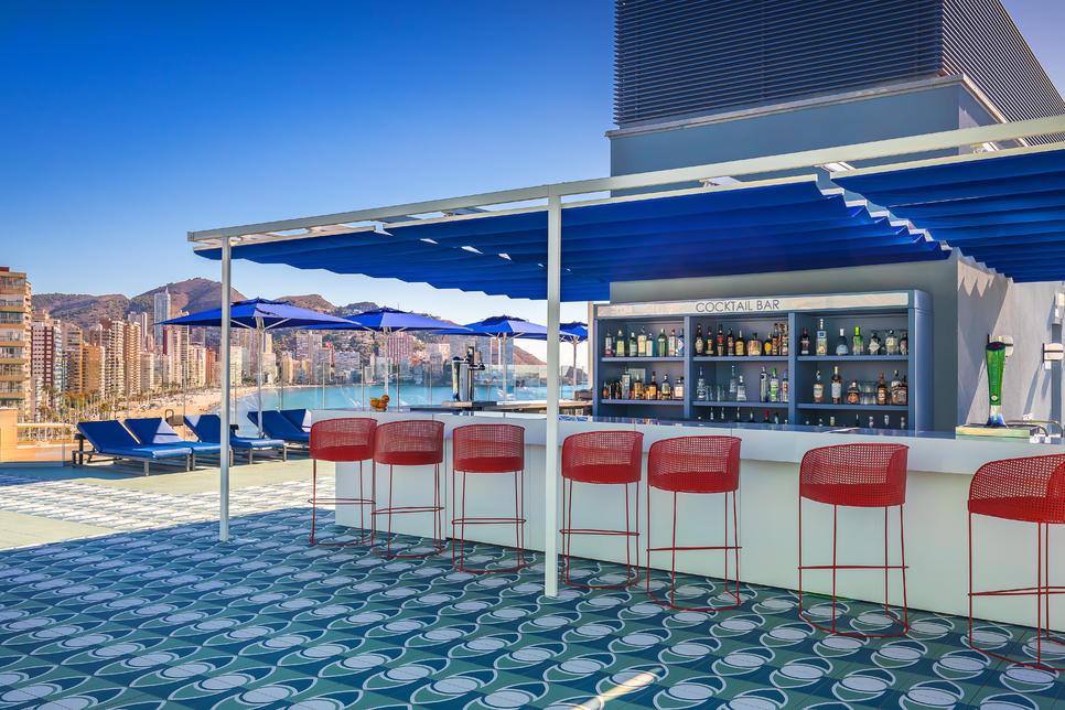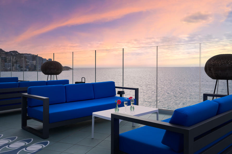 Intégralement remis au goût du jour, l’hôtel Barceló Benidorm Beach évoque le charme glamour de la côte méditerranéenne des années 1960. Avec son atmosphère raffinée et intime, il est particulièrement recommandé lors d’un séjour entre adultes. Son emplacement privilégié, en plein cœur de Benidorm et face à la plage de Levante, permet de profiter à la fois de journées farniente en bord de mer et de l’effervescence de Benidorm. À l’hôtel, on profite de chambres élégantes et d’une bonne proposition gastronomique incluant un restaurant de tapas. Son atout phare est sans conteste le spectaculaire toit-terrasse, où l’on peut se prélasser au bord de la piscine ou savourer un cocktail signature tout en admirant une vue imprenable sur la côte.