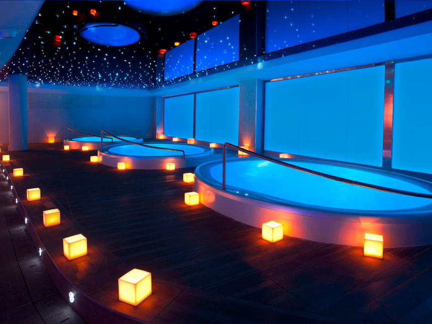 spa* : sauna, bain de vapeur, bain à remous, salle de relaxation, massages, soins bien-être