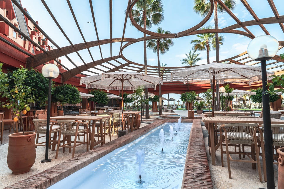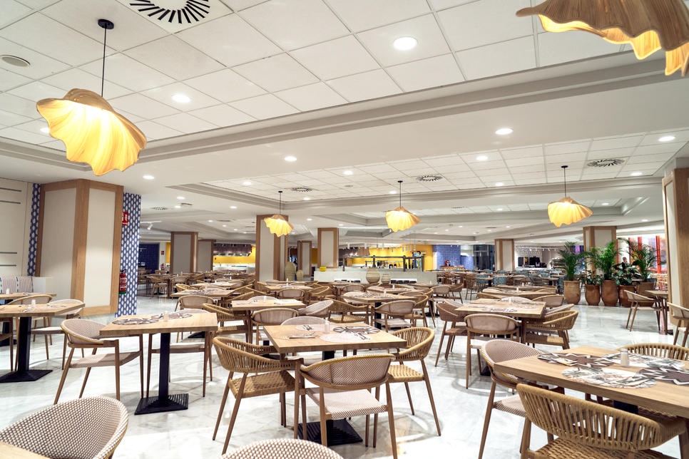 restaurant principal : "La Perla" cuisine internationale, cuisine méditerranéenne, show-cooking (restaurant buffet, pour petit-déjeuner, pour déjeuner, pour dîner, avec terrasse, soirée à thème)