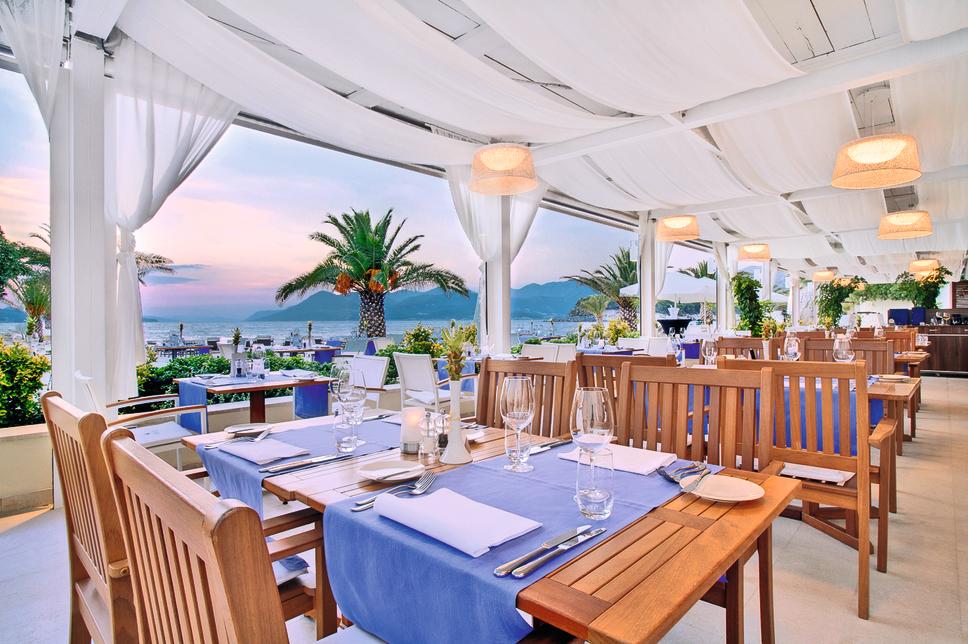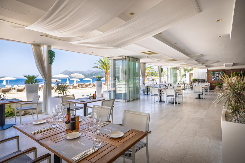 2 restaurants avec service à table : restaurant gastronomique "La Mar" cuisine méditerranéenne, poissons/fruits de mer (pour dîner, à la carte, sur réservation), restaurant gastronomique "Momenti" cuisine internationale, cuisine locale (pour dîner, à la carte, avec terrasse, vue panoramique, du 15.05 au 01.10 , sur réservation)