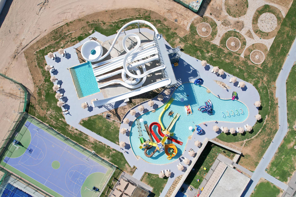 parc aquatique, toboggans (mini pentaglisse aquatique, pentaglisse aquatique classique, pentaglisse tournant, pentaglisse tubulaire)