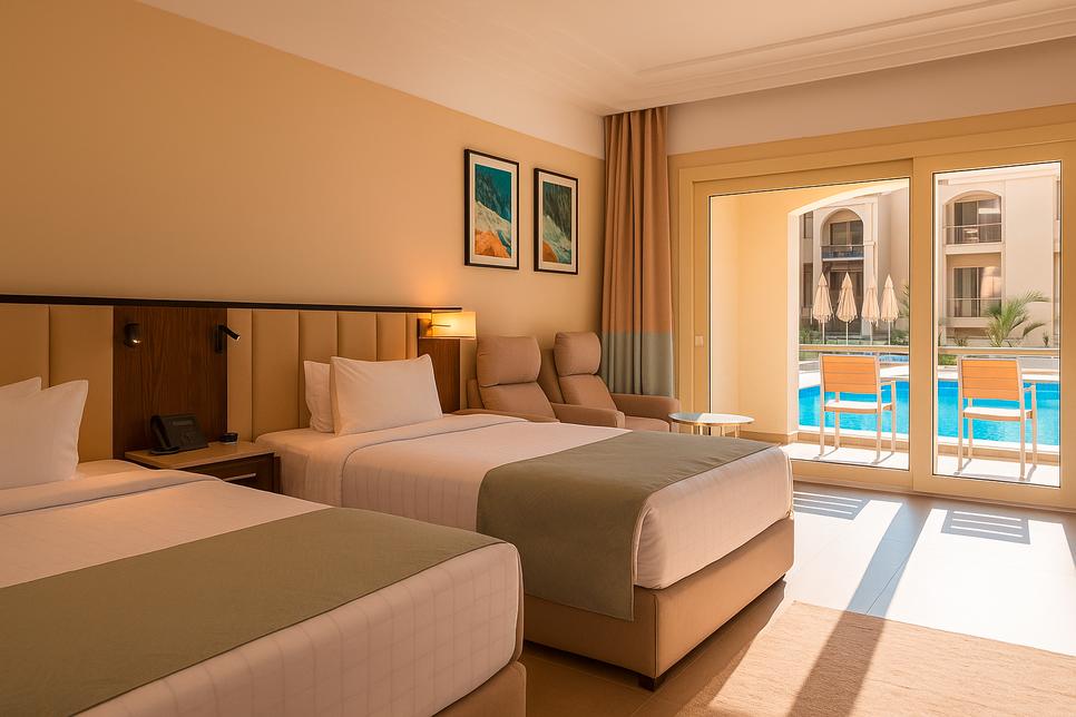 Le Serenity Sky Arc Sahl Hasheesh bénéficie d’un emplacement privilégié sur une splendide plage de sable. Associant confort et service prévenant, l'hôtel s'adresse aussi bien aux personnes désireuses de se détendre qu'aux voyageurs actifs. Vous y trouverez un large choix d’hébergements qui offrent tous une vue imprenable sur la mer Rouge. L’offre de divertissements variée vient parfaire l’expérience pour un séjour riche et personnalisé. Côté gastronomie, l’établissement propose un voyage culinaire, avec des spécialités méditerranéennes, asiatiques et italiennes, préparées avec soin et raffinement. Laissez-vous séduire par une atmosphère sereine et élégante, propice à la détente et aux plaisirs !