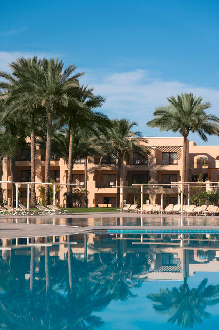 Cet hôtel, qui dévoile un cadre à la fois design et convivial, donne sur la baie naturelle de Madinat Coraya et se situe à distance de marche du parc aquatique Aqua Coraya. Grâce à ses piscines, ses espaces dédiés aux enfants et son vaste programme d'activités adapté à toutes les attentes, l'adresse se prête parfaitement à un séjour en famille ou entre amis. C’est également une très bonne option pour qui veut s’adonner à la plongée du fait de son excellent emplacement et son centre de plongée situé au sein même de l’établissement.