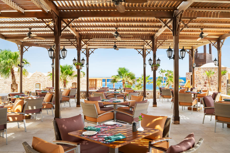 3 restaurants avec service à table : restaurant gastronomique "Seagull" cuisine internationale (pour dîner, à la carte, avec terrasse, vue mer, sur réservation), "Al Fresco" cuisine italienne (pour déjeuner, pour dîner, avec terrasse, vue mer, sur réservation), "Divers' Club" cuisine internationale (pour déjeuner, à la carte)