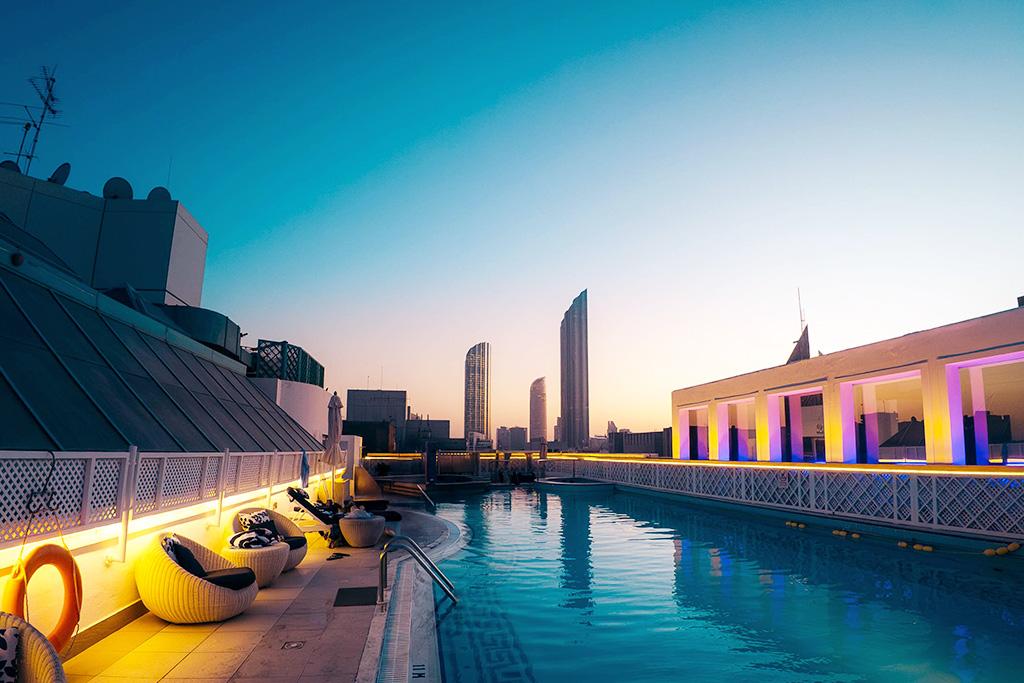 - Situé sur le toit-terrasse, le « Level Lounge » offre une superbe vue sur la skyline d’Abu Dhabi, en particulier au coucher de soleil. Dans un cadre élégant, le bar vous propose une carte de cocktails créatifs, de vins raffinés et de spiritueux de qualité et des boissons sans alcool. Dans une ambiance chic décontractée, vous pourrez aussi vous régaler de tapas méditerranéennes, de brochettes savoureuses, de fromages, de sushis et autres petites créations gastronomiques à déguster en toute légèreté….