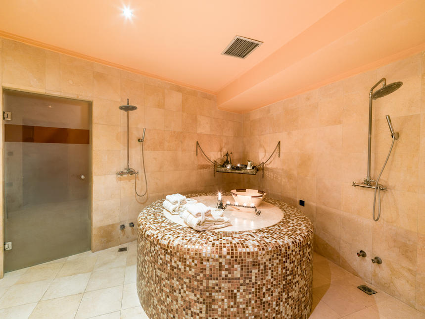 Accès au sauna, au hammam et au bains à remous // Mini-bar réapprovisionné tous les deux jours (boissons non-alcoolisées, bière et eau).