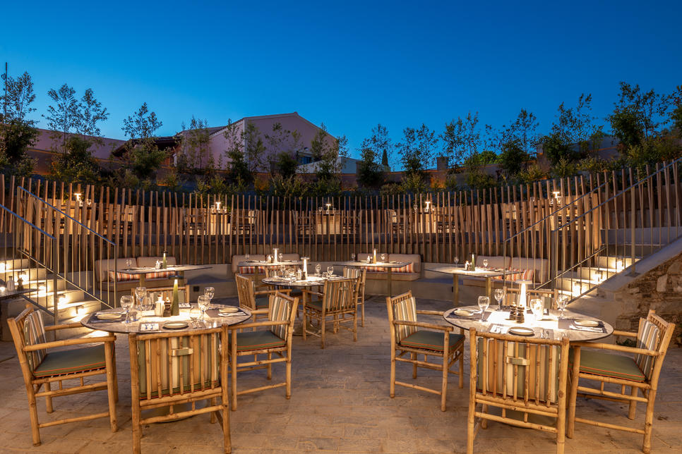 3 restaurants avec service à table : "Coryfo" cuisine grecque (pour dîner, à la carte, avec terrasse, sur réservation), "Elia Farm-to-Table Restaurant" (pour petit-déjeuner, pour dîner, sur réservation), "La Cantina" cuisine italienne (pour dîner, à la carte, sur réservation)