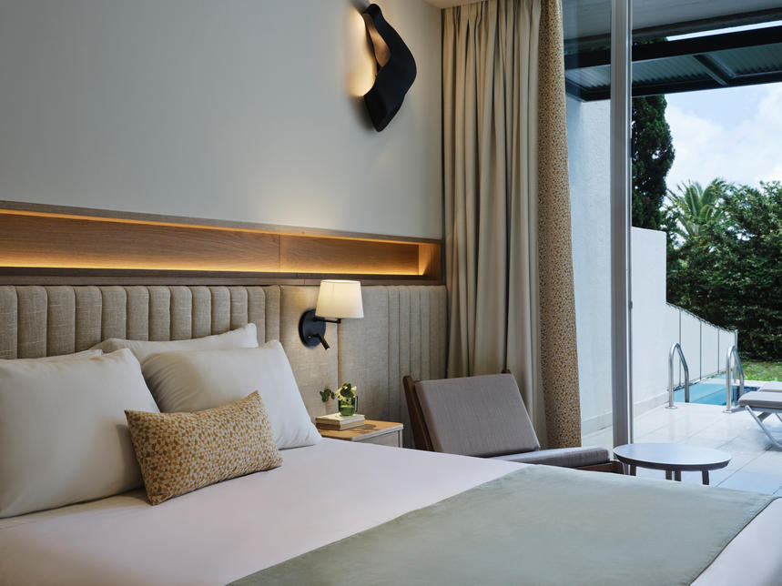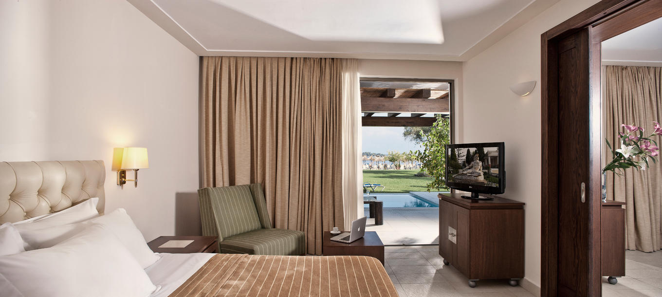 Rares sont les hôtels à Corfou qui possèdent un spa et le Kontokali Bay en fait partie ! Grâce à ce centre de bien-être mais également grâce à son service de qualité et ses infrastructures de bon standing, l'établissement a su marquer sa différence. Il bénéficie en outre d'une plage agréable où il fait bon s'installer à l'ombre d'un parasol. En revanche, les distances à l'intérieur de l'établissement ne sont pas toujours réduites. La clientèle est très européenne, on y croise beaucoup de francophones ainsi que des Allemands. Ouvert depuis 1971, ses dernières rénovations datent de 2008, année durant laquelle l'hôtel a augmenté sa capacité en construisant des suites. Pour information, l'hôtel est ouvert à partir du mois d'avril et jusqu'au mois d'octobre.