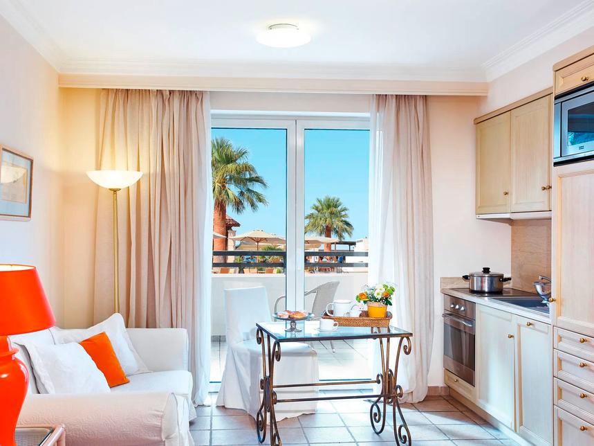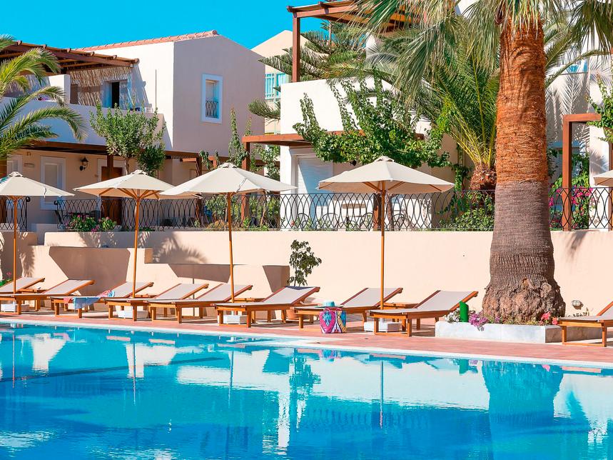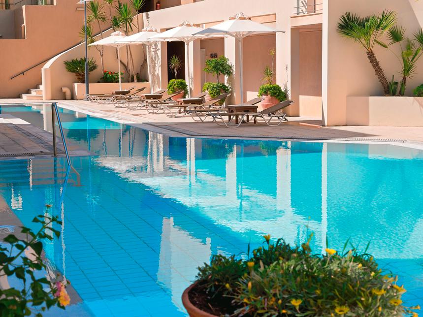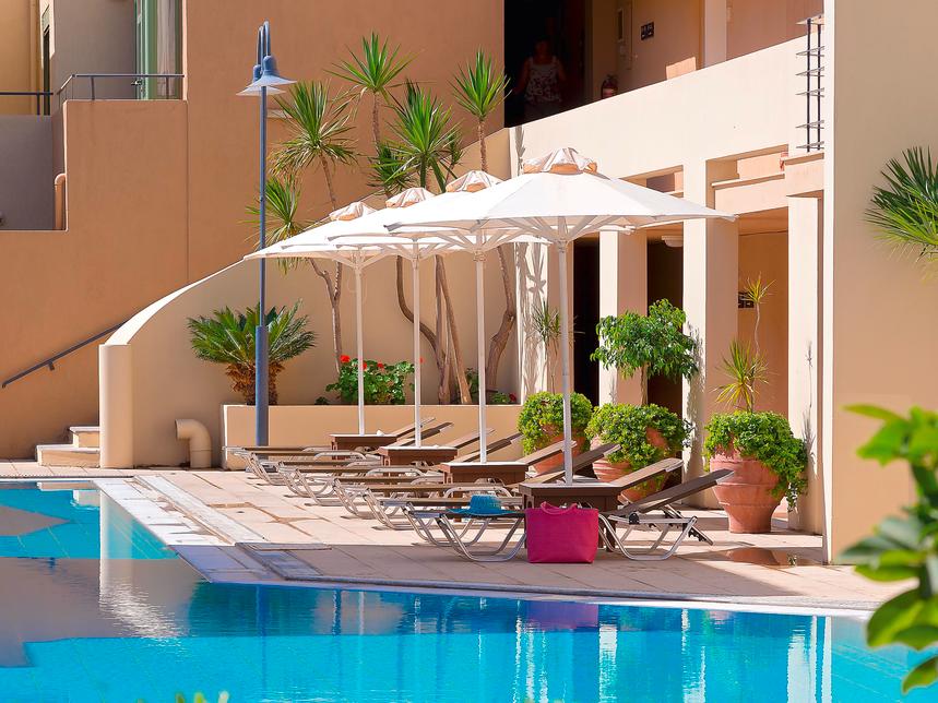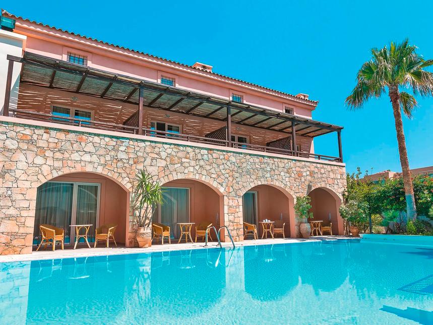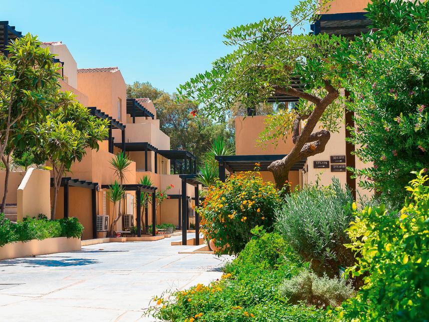 Une adresse Grecotel tranquille, pensée comme un petit village et composée d’appartements agréablement conçus.