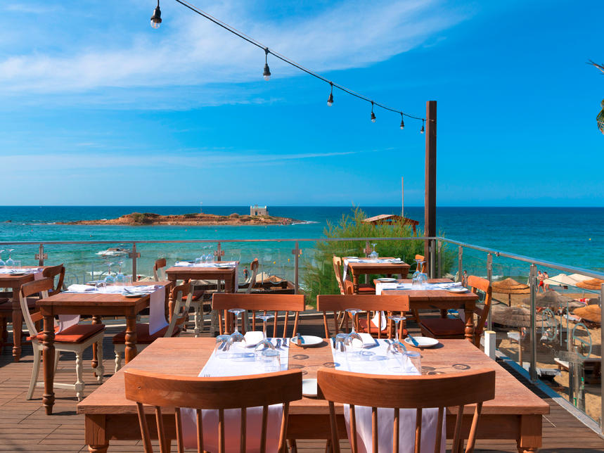Un dîner à la carte au restaurant Elia (menu fixe à 5 plats) et Veranda (menu à 4 plats) par séjour (une fois dans chaque restaurant). // Au Seaside All Day Bar : carte exclusive avec une sélection de boissons internationales de 10:00 à 00:00. Accès quotidien au Sunset Signature Cocktails Bar (réservé aux adultes), avec une sélection de cocktails et spiritueux de 19:00 à 00:00 // Chaises longues et parasol réservés pour toutes les chambres. // POUR LES HÔTES DE LA PARTIE HIGH WHITE BEACH UNIQUEMENT : au restaurant à la carte Elia : brunch de 10:30 à 12:30, snacks de 10:30 à 18:00, déjeuner à 3 plats et dîner à 5 plats (quotidiennement).