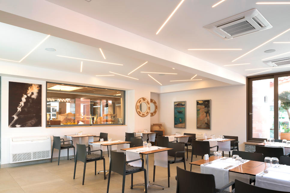 2 restaurants avec service à table : "Elia" cuisine locale (pour dîner, choix de menus, sur réservation), "Veranda" cuisine italienne (pour dîner, à la carte, sur réservation)