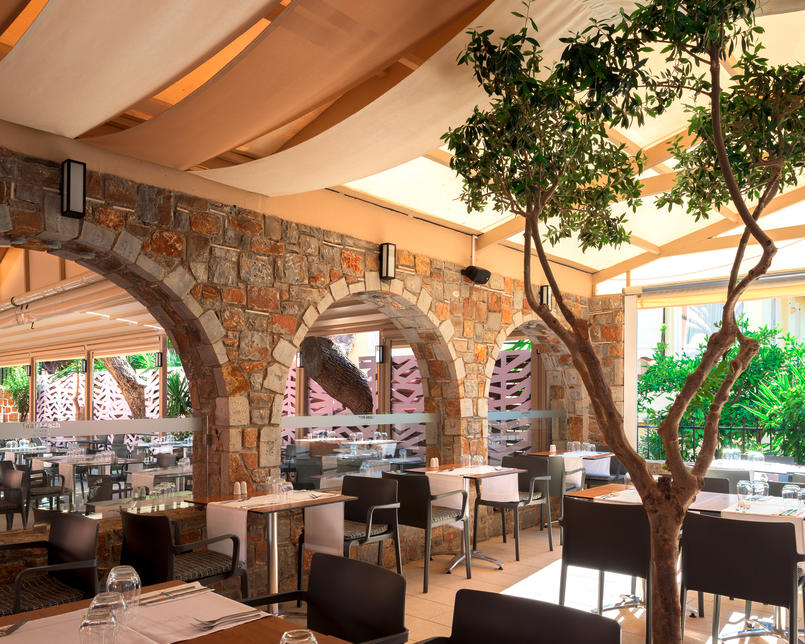 restaurant principal : "Estia" cuisine grecque, cuisine internationale, show-cooking (restaurant buffet, pour petit-déjeuner, pour déjeuner, pour dîner, soirée à thème)