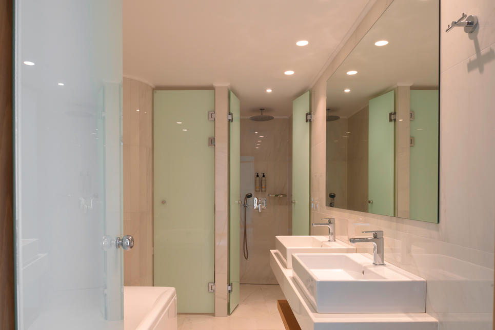 De 10:30 à 12:30 : brunch au restaurant Elia. Un dîner à la carte au restaurant Elia (menu fixe à 5 plats) ou Veranda (menu à 4 plats) une fois par séjour. // Demi-pension réservable uniquement lors d’un séjour dans l’une des chambres de la partie High Beach White.