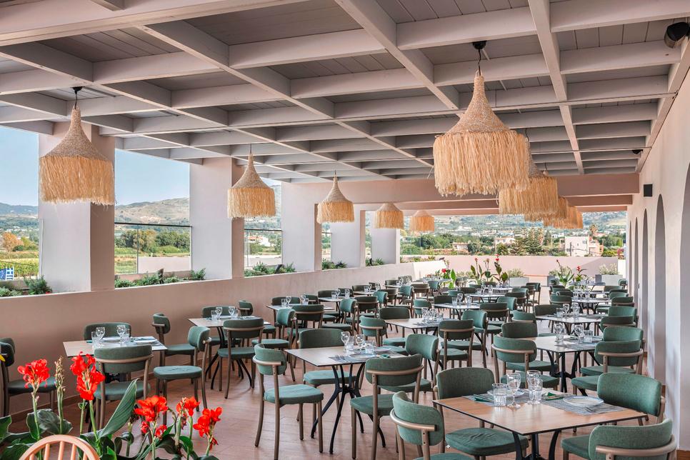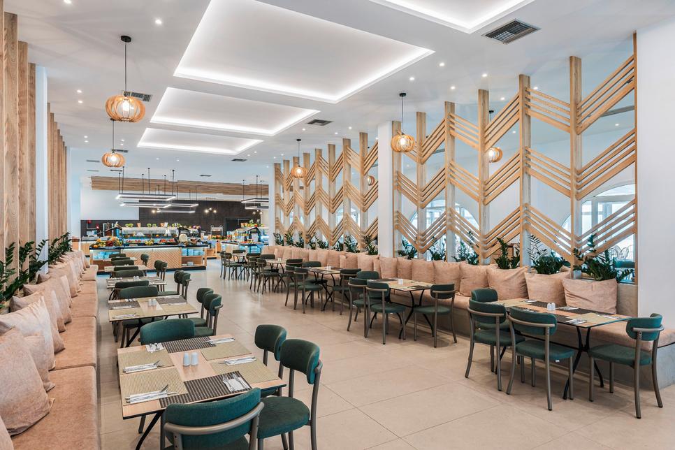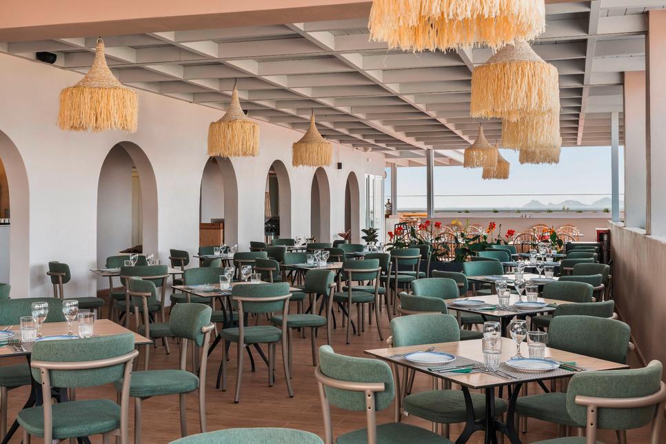 restaurant principal : "Nafsika" cuisine internationale, cuisine méditerranéenne (restaurant buffet, pour petit-déjeuner, pour déjeuner, pour dîner, avec terrasse)