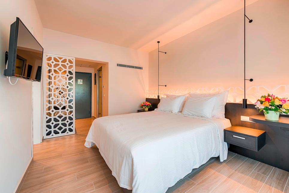 L’Esperides Beach Hotel met l’accent sur les vacances en famille, grâce à son offre de restauration et son programme d’activités qui mettent tout le monde d’accord. Petit plus pour 2026 : une partie de ses aménagements, notamment au niveau du bâtiment principal, ont été rénovés. Petits et grands profiteront ainsi d’un séjour inoubliable agrémenté d’un programme récréatif étendu, avec notamment des spectacles et des animations, mais aussi de superbes installations comme les toboggans aquatiques. En parallèle, l’atmosphère club, la formule tout compris, les superbes panoramas sur la mer et la proximité de la plage labellisée pavillon bleu, garantissent des vacances relaxantes pour tous.