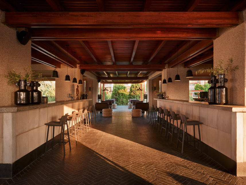 4 bars dont bar à la plage : "Cheek to cheek", bar-piscine (2) : "Kallithea", "Armira", lobby-bar : "Blue", certains avec terrasse