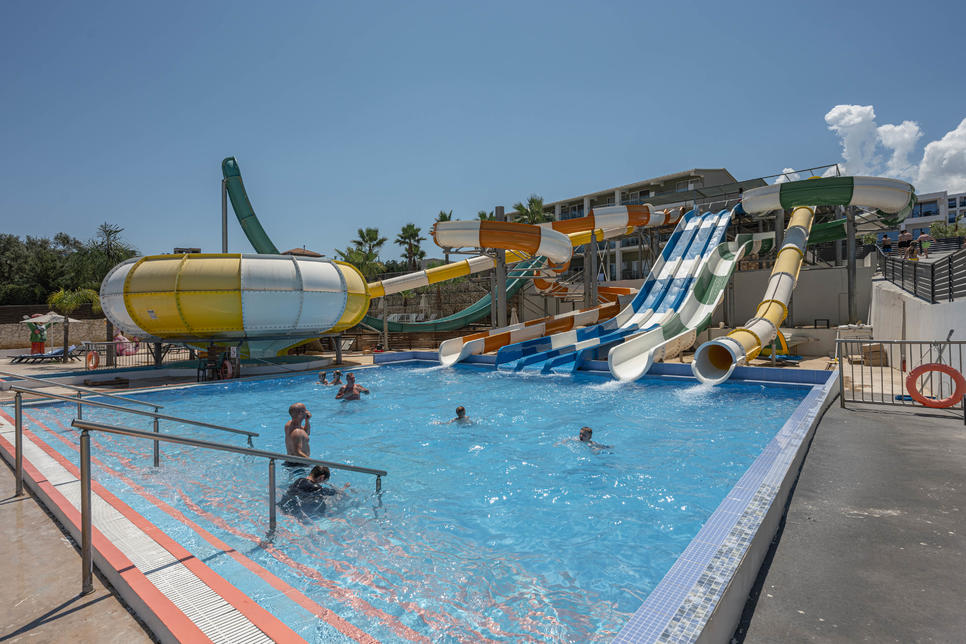 Si vous cherchez un hôtel pour des vacances en famille à Zakynthos, le Caretta Paradise Resort & Waterpark est fait pour vous ! Ses appartements modernes de deux pièces offrent tout l’espace nécessaire pour accueillir confortablement jusqu’à quatre personnes, certains bénéficiant même d’un accès direct à une piscine partagée ou privée. Le véritable atout du complexe réside dans son vaste parc aquatique, un paradis pour petits et grands avec plusieurs piscines, toboggans et jeux d’eau garantissant des heures d’amusement. À cela s’ajoutent une formule tout compris pour savourer votre séjour en toute sérénité, ainsi qu’une multitude de divertissements, dont un Fun Park attenant.