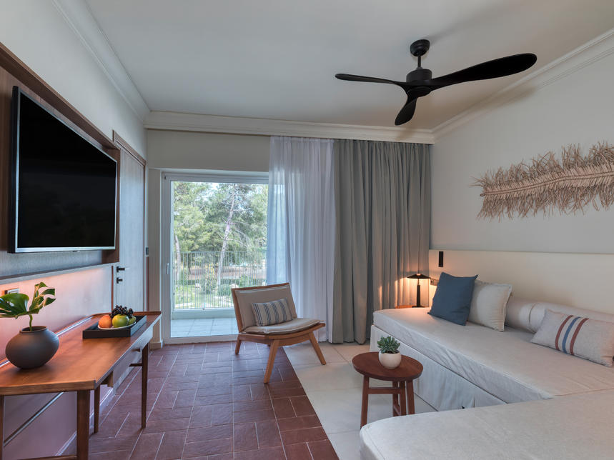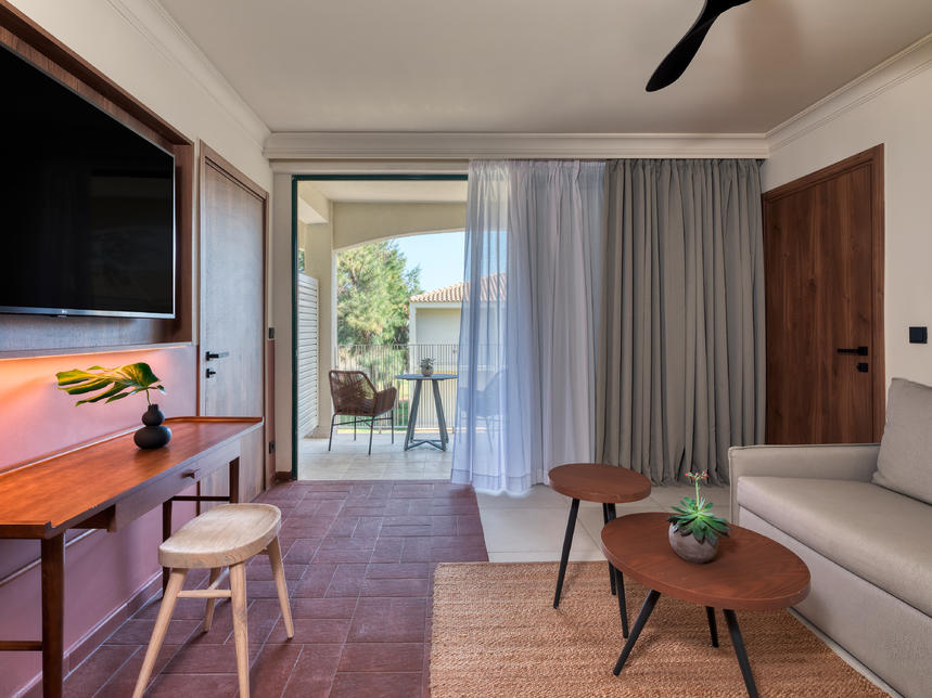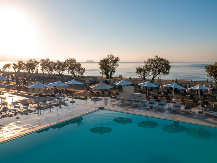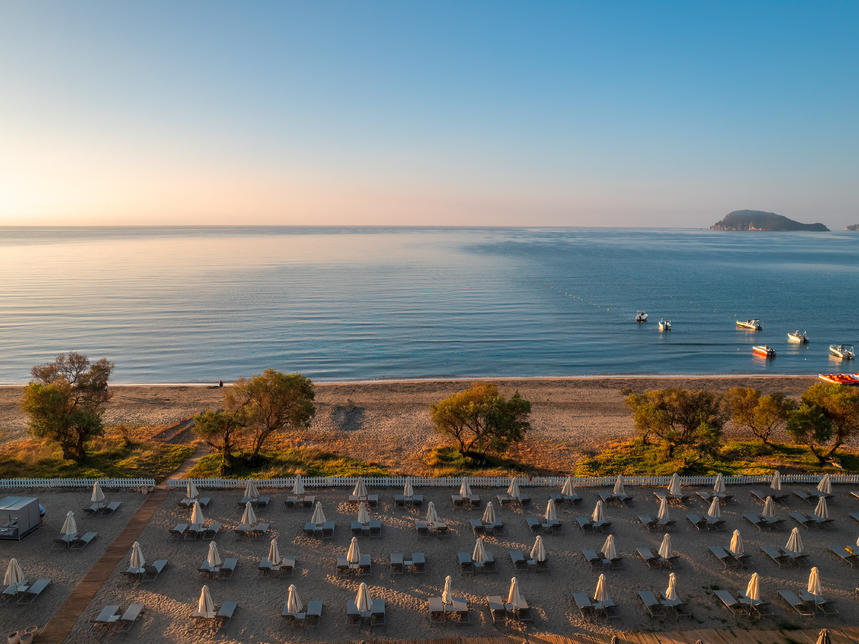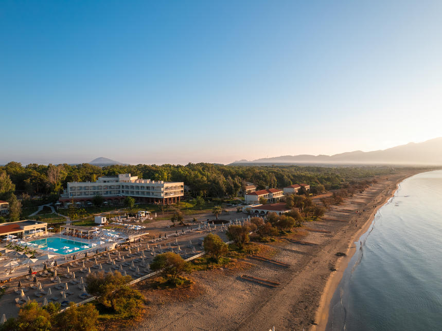 Ce resort plante le décor au cœur d’une forêt de pins et le long de superbe plage abritant une communauté de tortues Caretta Caretta. Son ancrage local se ressent à travers sa décoration, mariant matières et les couleurs de l’environnement naturel, et à travers une proposition culinaire axée sur les spécialités du cru. Les chambres et suites allient confort et style et toutes sont pourvues d’une terrasse ou d’un balcon. L’offre de divertissements s’articule autour d’une piscine et d’une palette d’activités nautiques et sportives. S’ajoutent à cela des prestations bien-être s’appuyant sur le savoir-faire grec et des équipement et services pensés pour les enfants comme la piscine ludique ou le mini-club.