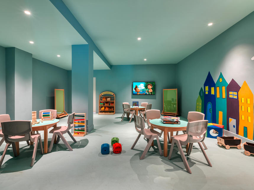 1 bassin pour enfants (chauffé), 1 Splashpool, buffet enfants, chaises hautes, lit bébé (sur demande)