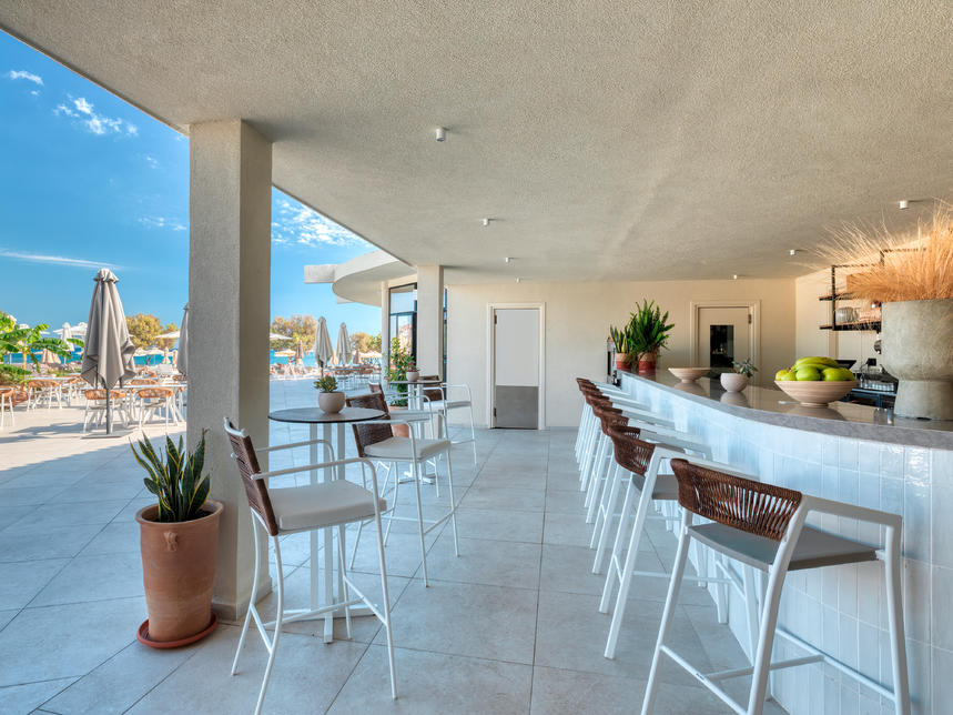 4 bars dont bar : "Spritzeria", bar à cocktails : "Oikia", bar-piscine : "Lianolia", snack-bar : "Just Wanna Have Sun"