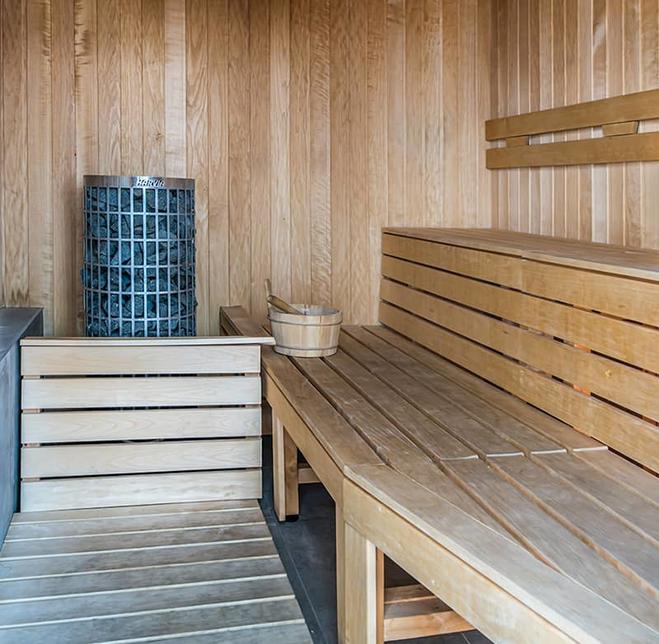 espace sauna avec sauna infrarouge et sauna finlandais et petite terrasse