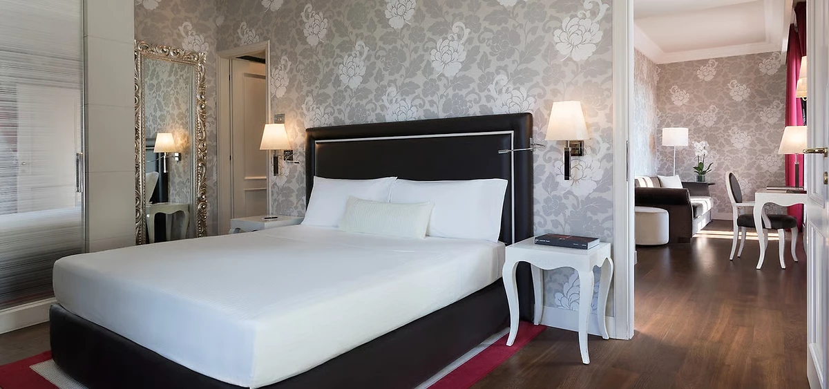 - Chambre deluxe : D’une superficie de 20 m², ces suites junior, à la décoration classique et élégante, ont tout le confort moderne et une belle vue sur la ville. Accès au Spa et à la salle de fitness compris.
